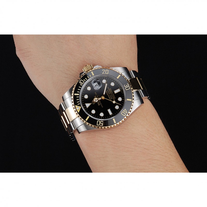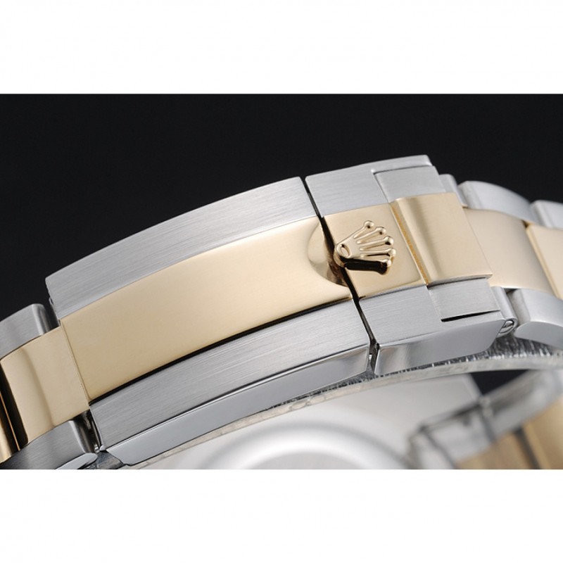 pulsera: dos tonos tono brazalete de eslabones de acero inoxidable cepillado y oro con el grabado Rolex pliegue en el corchete con el logotipo de Rolex