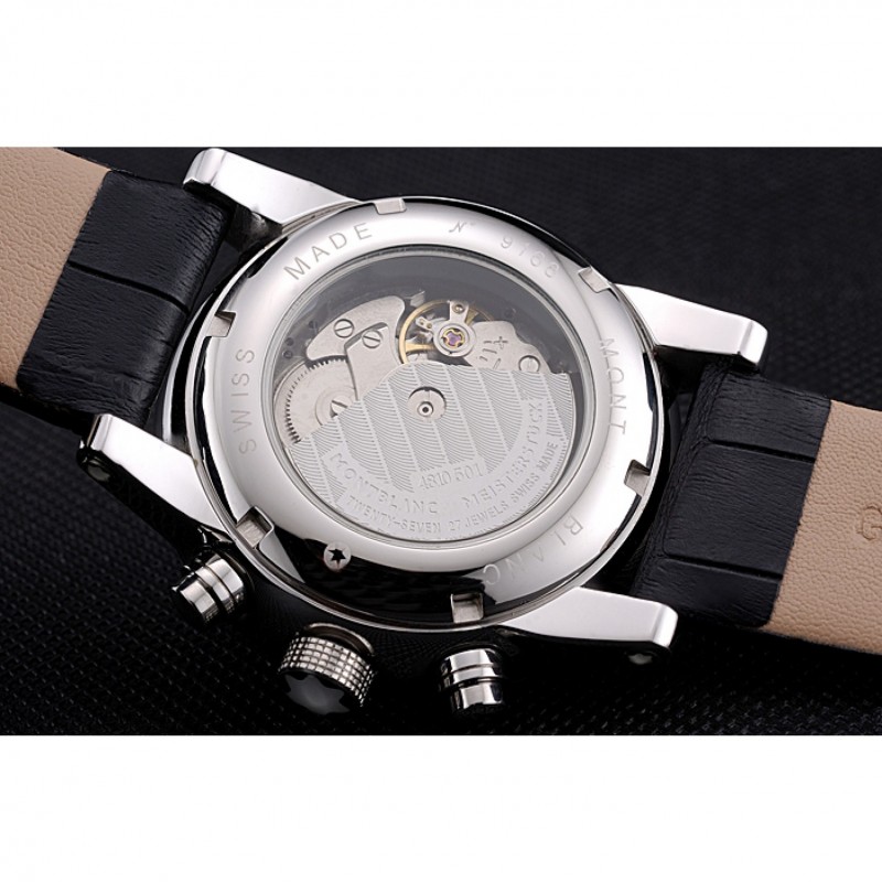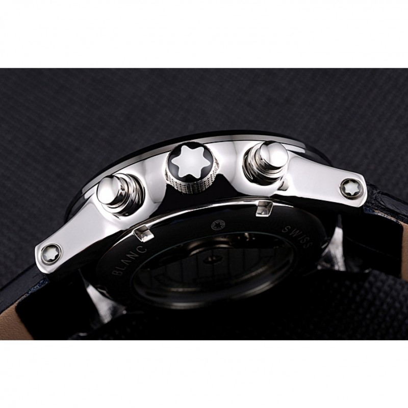 Corona: Ion-plateado corona cutwork con logo MontBlanc y dos coronas de botón de empuje de acero inoxidable pulido en cada lado de ella