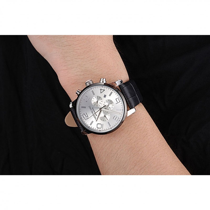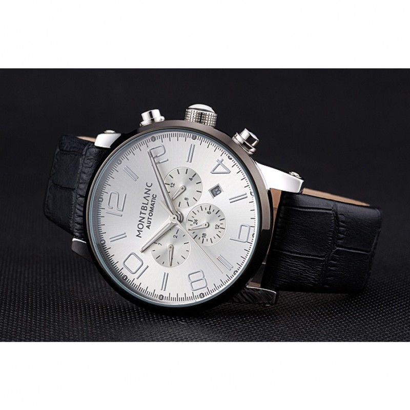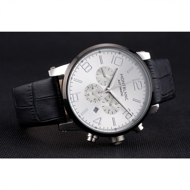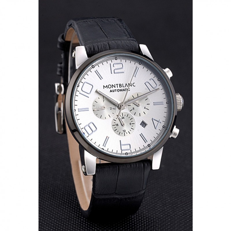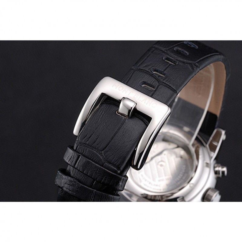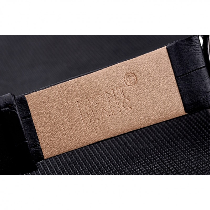 pulsera: correa de piel de cocodrilo negro en relieve calor MontBlanc con MontBlanc grabado de acero inoxidable pulido de gancho hebilla de cierre de