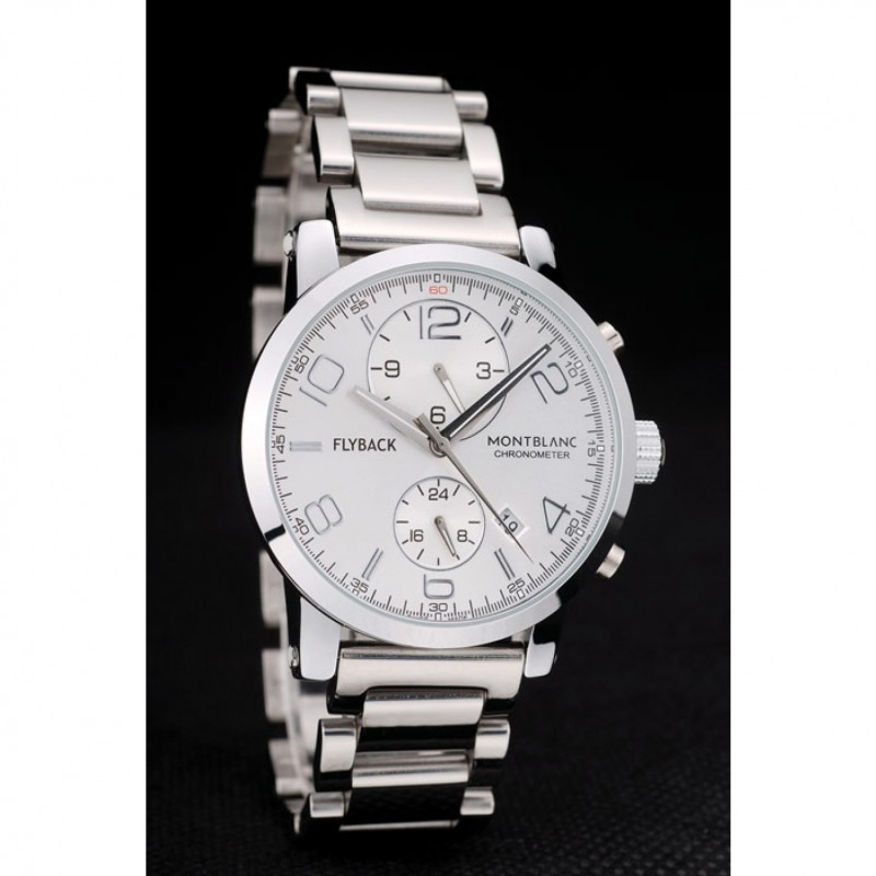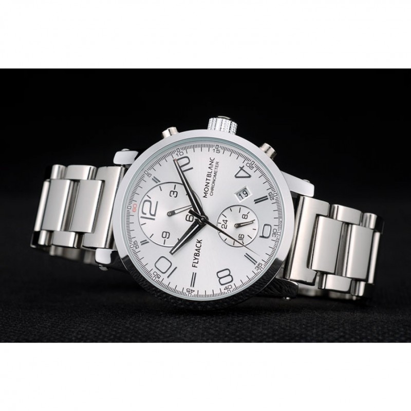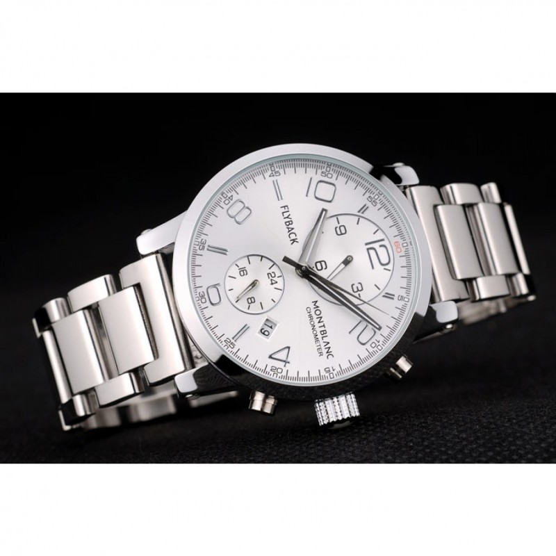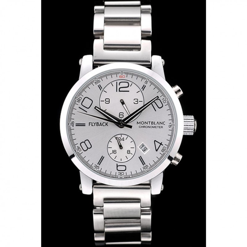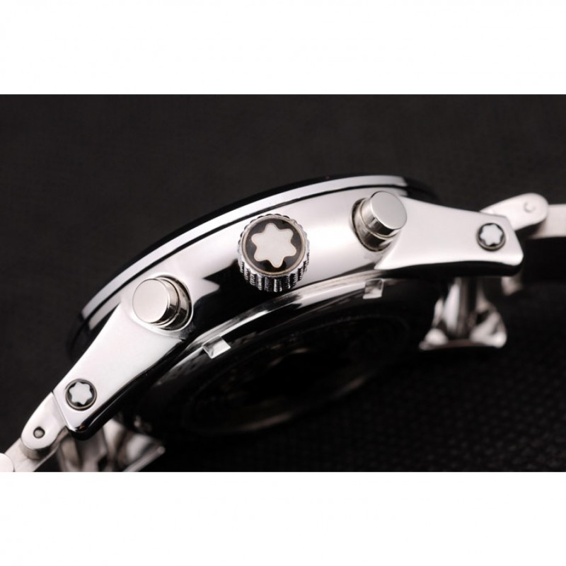 Corona: Pulido corona cutwork acero inoxidable con logo MontBlanc y dos coronas de botón de empuje de acero inoxidable pulido en cada lado de ella