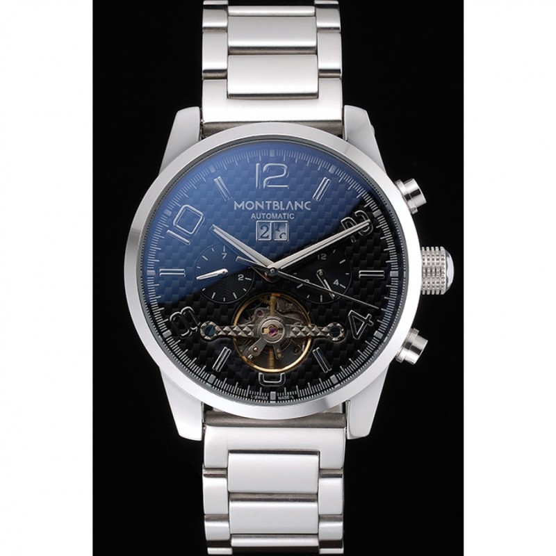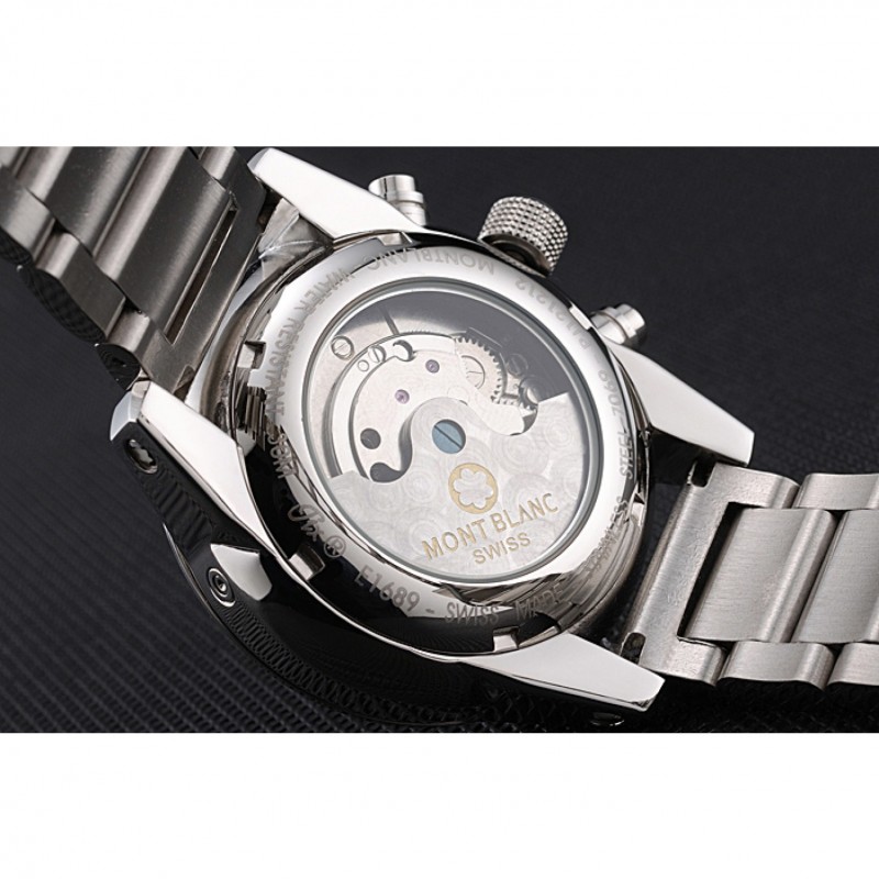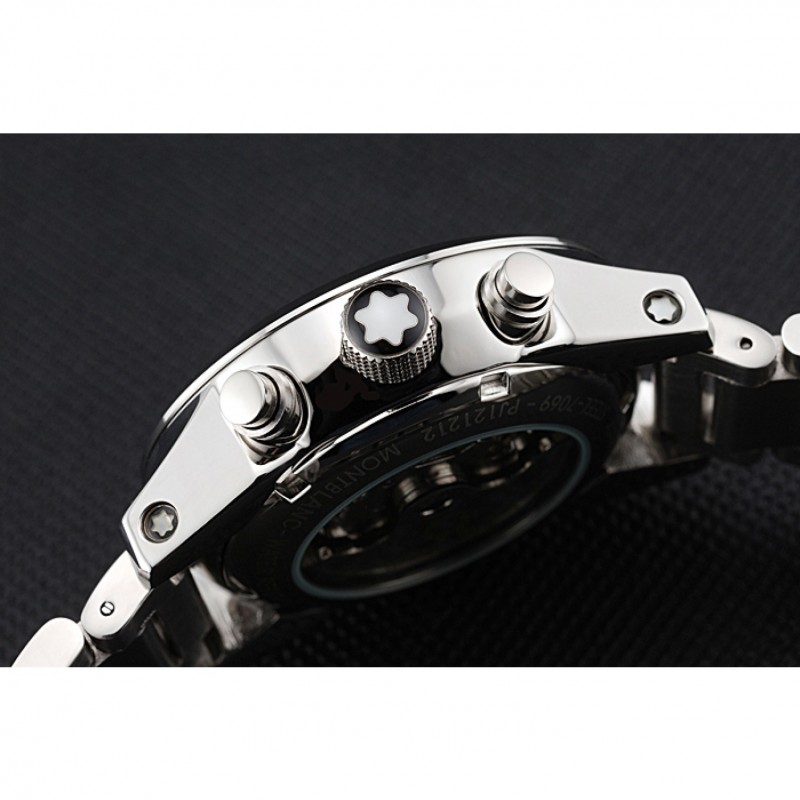 Corona: Pulido corona cutwork acero inoxidable con logo MontBlanc y dos coronas de botón de empuje de acero inoxidable pulido en cada lado de ella