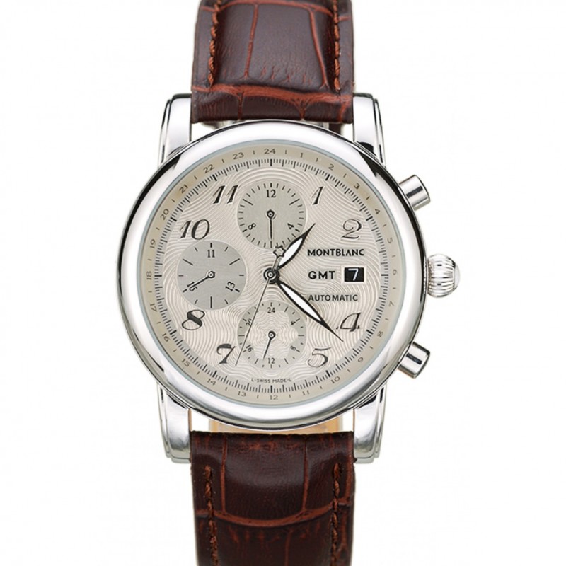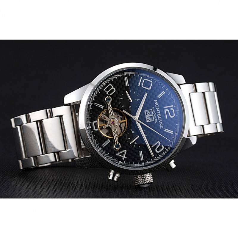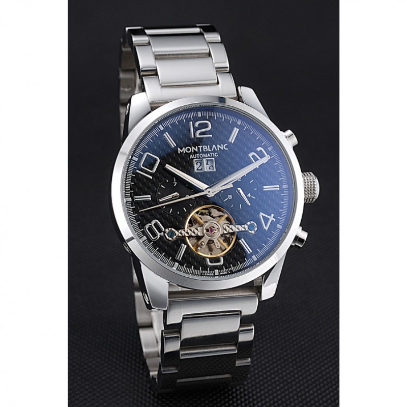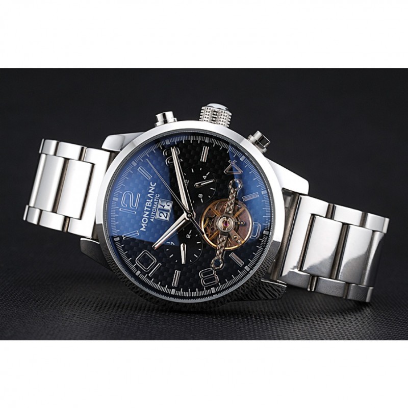 Crown: pulido corona cutwork de acero inoxidable con logo MontBlanc y dos pulido de empuje de acero inoxidable coronas de botones en cada lado de ella