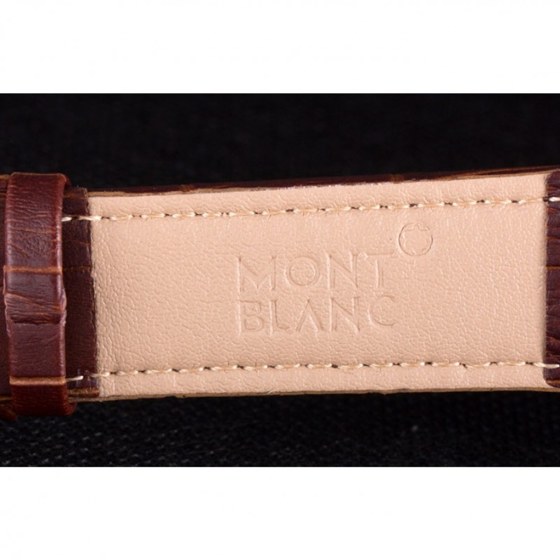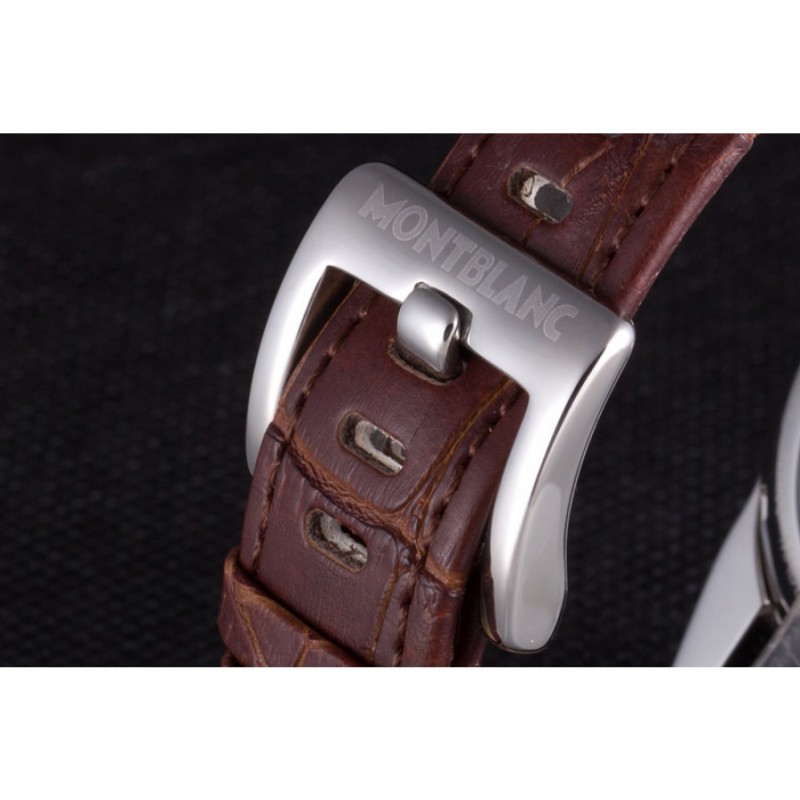 pulsera: correa de piel de cocodrilo marrón en relieve calor MontBlanc con MontBlanc inscrito de acero inoxidable pulido de gancho hebilla de cierre