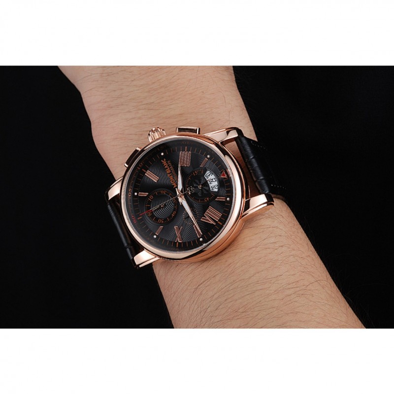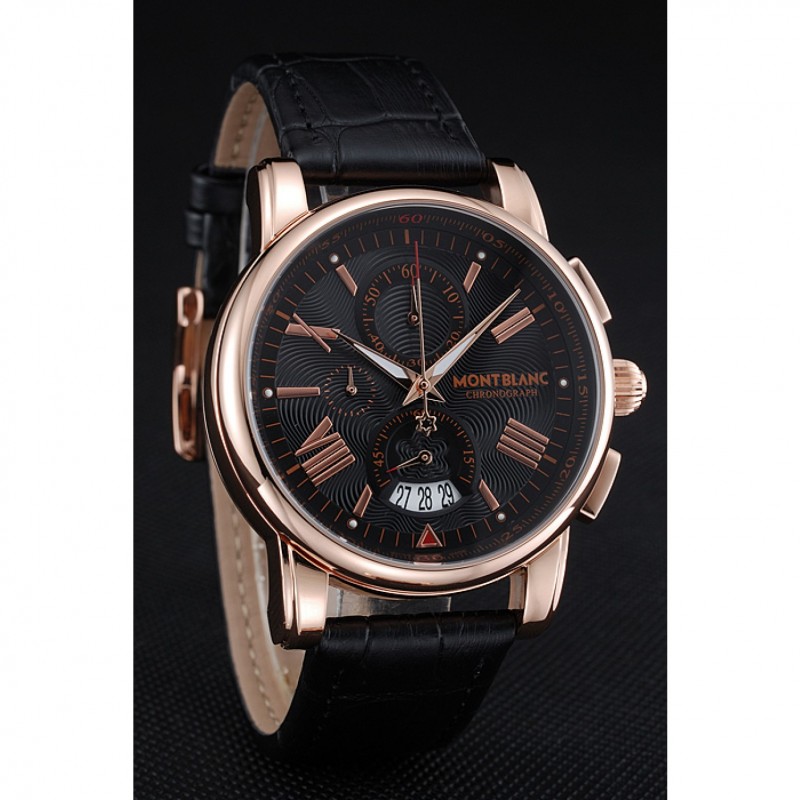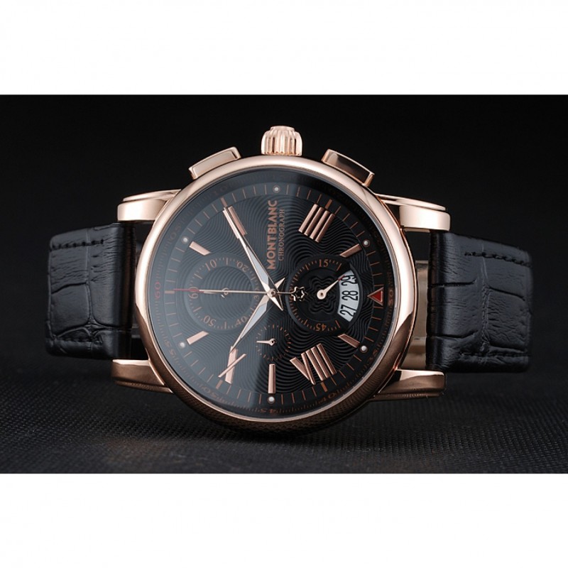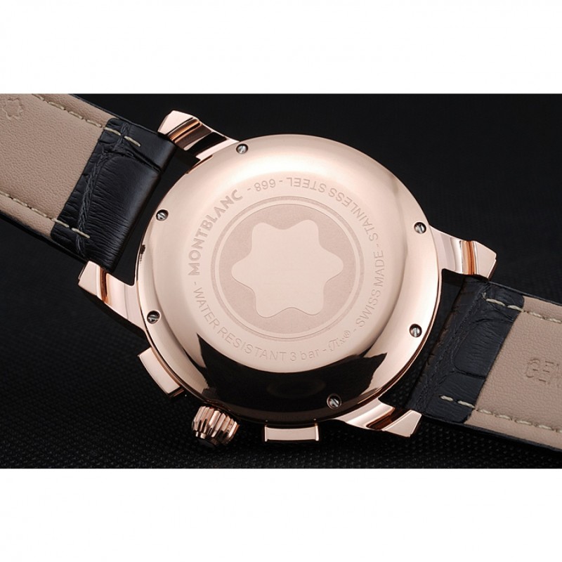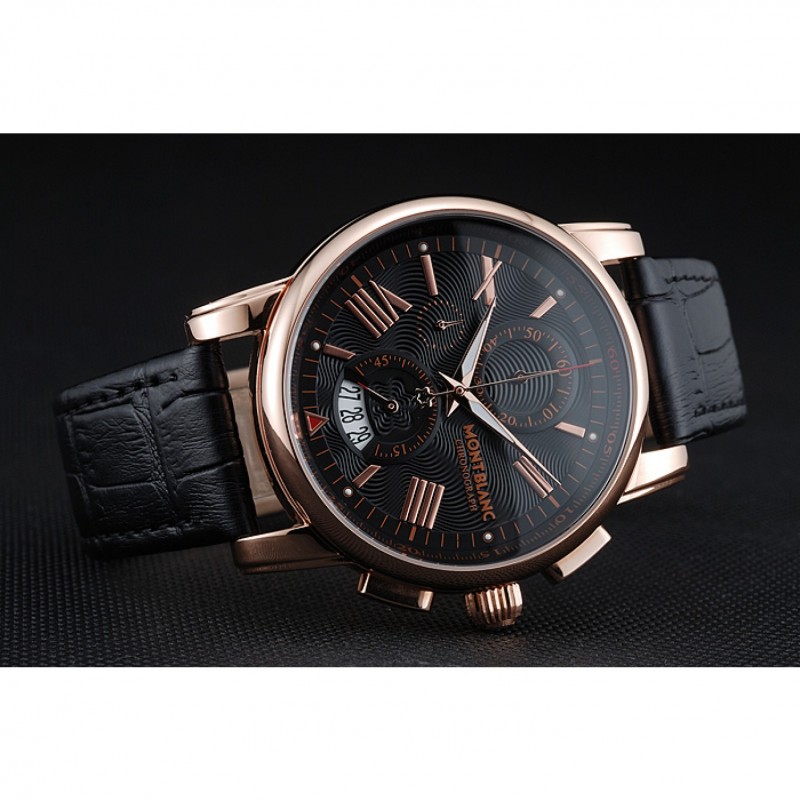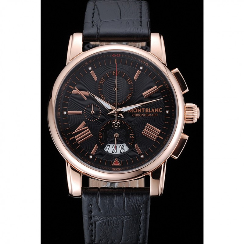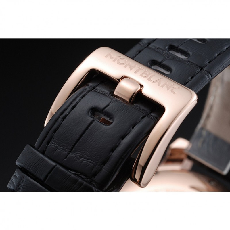 Montblanc Cronógrafo Negro Dial pulsera de cuero Negro Rose-Caja Oro 1454110