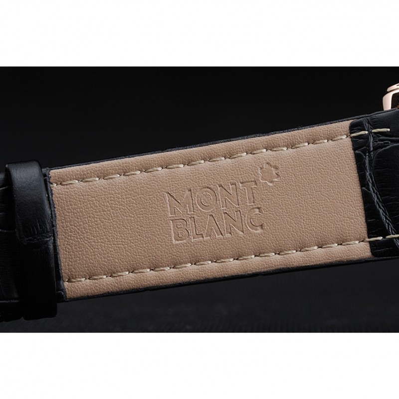 pulsera: correa de piel de cocodrilo negro en relieve calor Montblanc con Montblanc grabado 18K rose-oro gancho plateado corchete -buckle