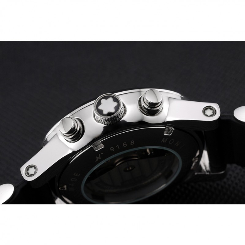 Crown: pulido corona cutwork de acero inoxidable con esmaltado logo espárrago MontBlanc y pulsador redondo coronas de botón en cada lado de ella