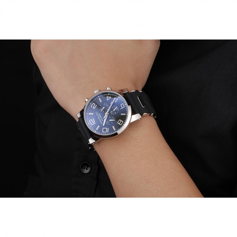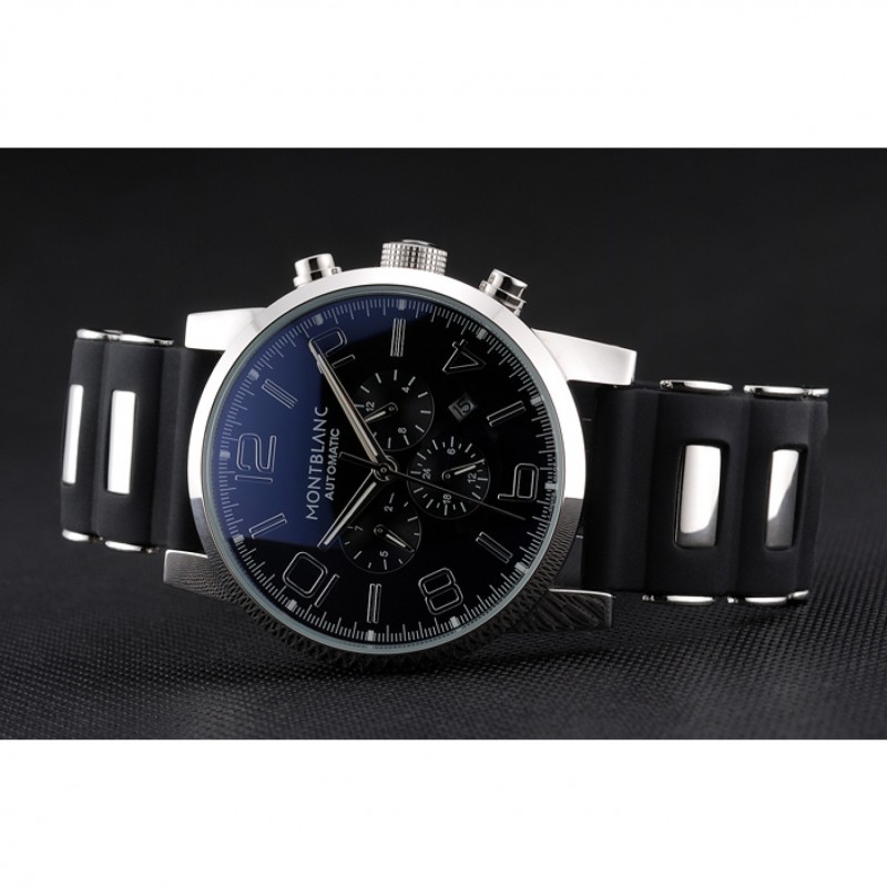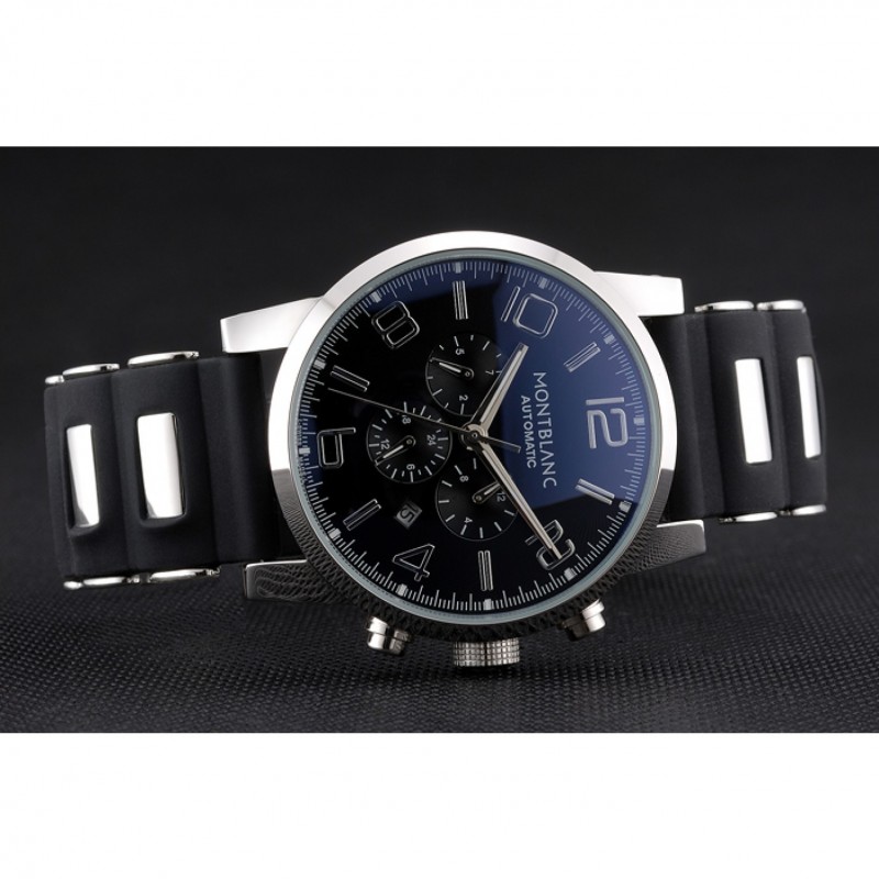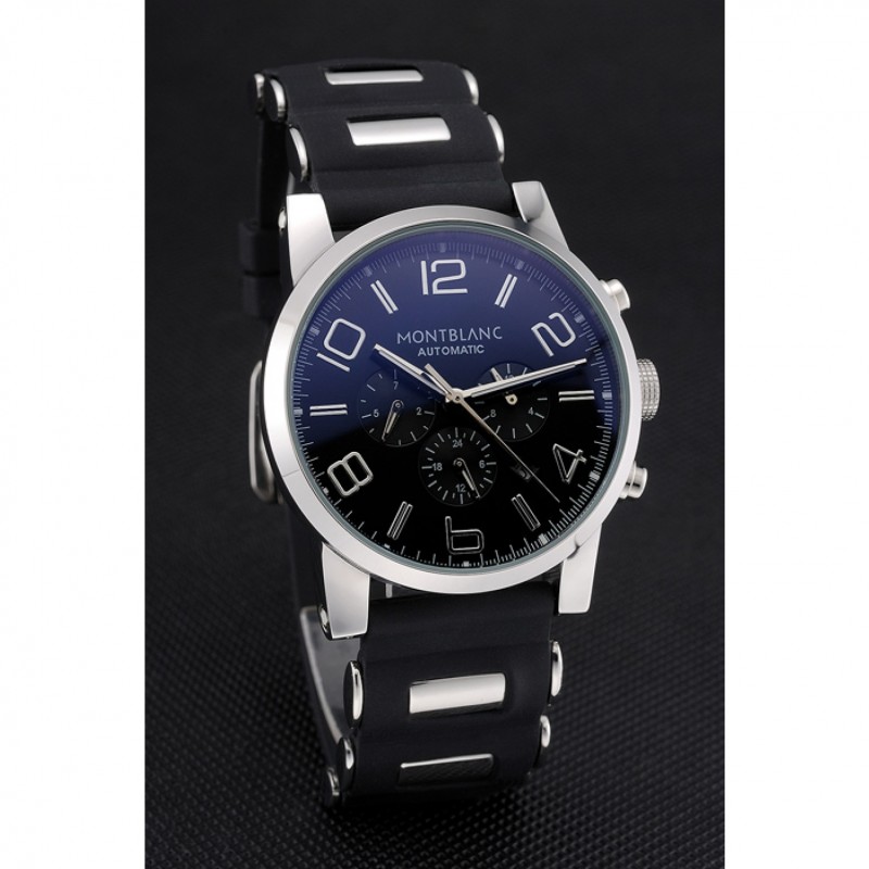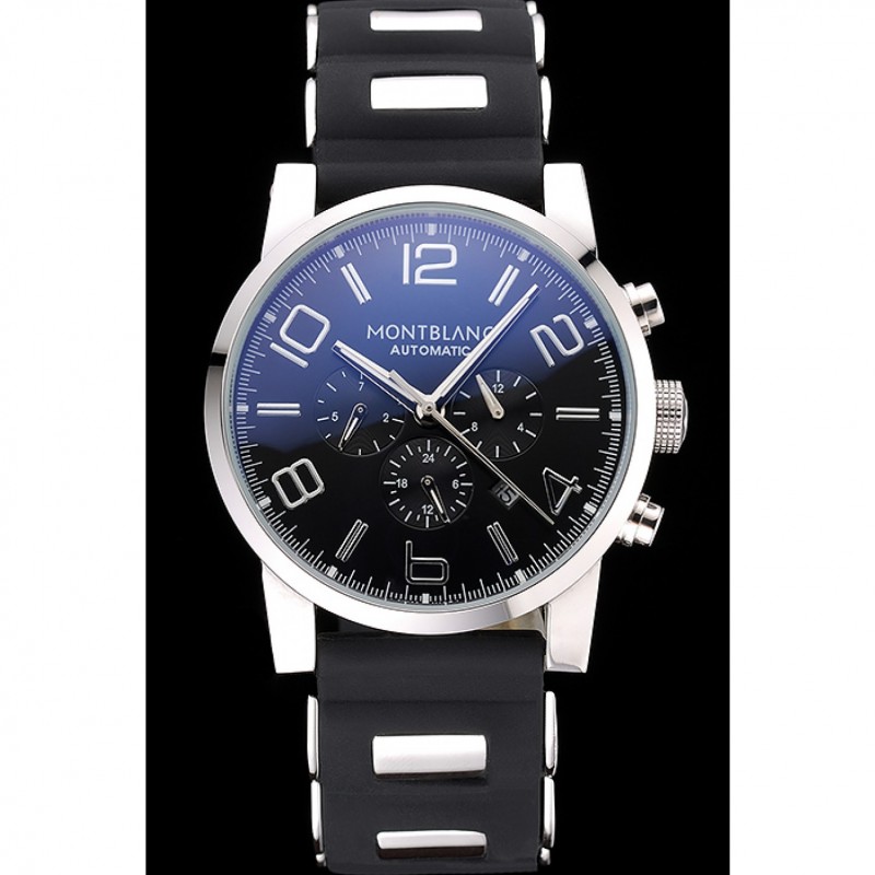 pulsera: correa de caucho negro en relieve calor MontBlanc con MontBlanc inscrito de acero inoxidable pulido de gancho hebilla de cierre