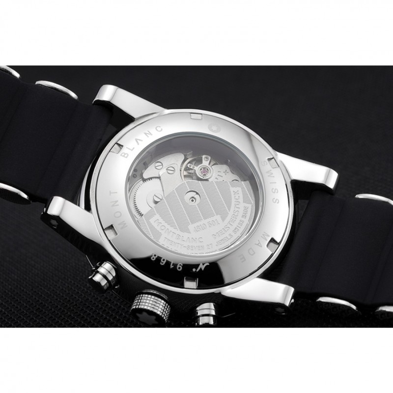 Volver: acero inoxidable pulido complemento en la parte trasera con la mecánica transparentes revelando centro y grabados MontBlanc
