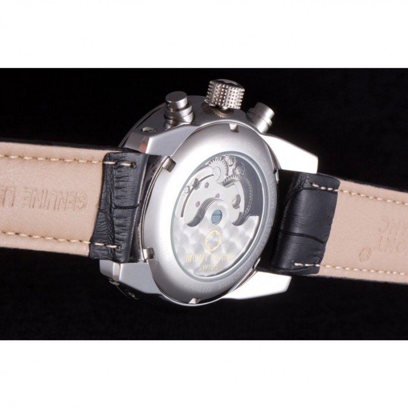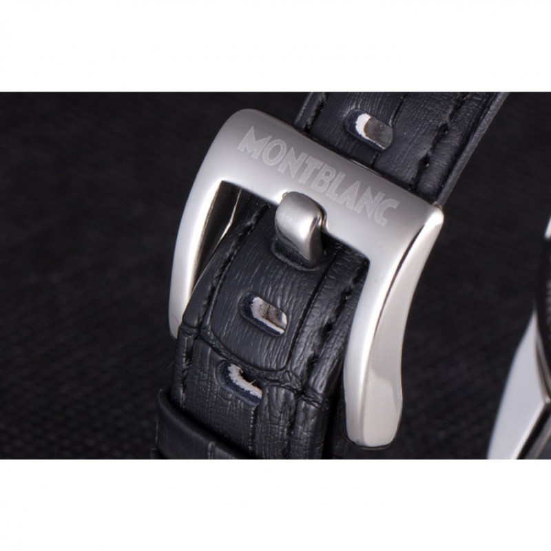 pulsera: correa de piel de cocodrilo negro en relieve calor MontBlanc con MontBlanc inscrito de acero inoxidable pulido de gancho hebilla de cierre