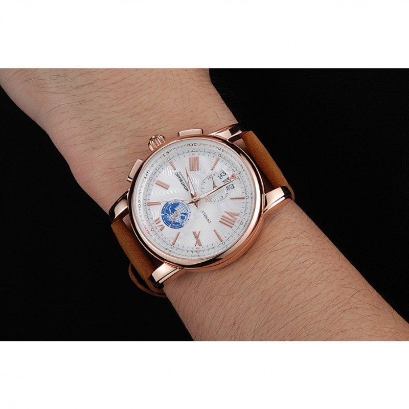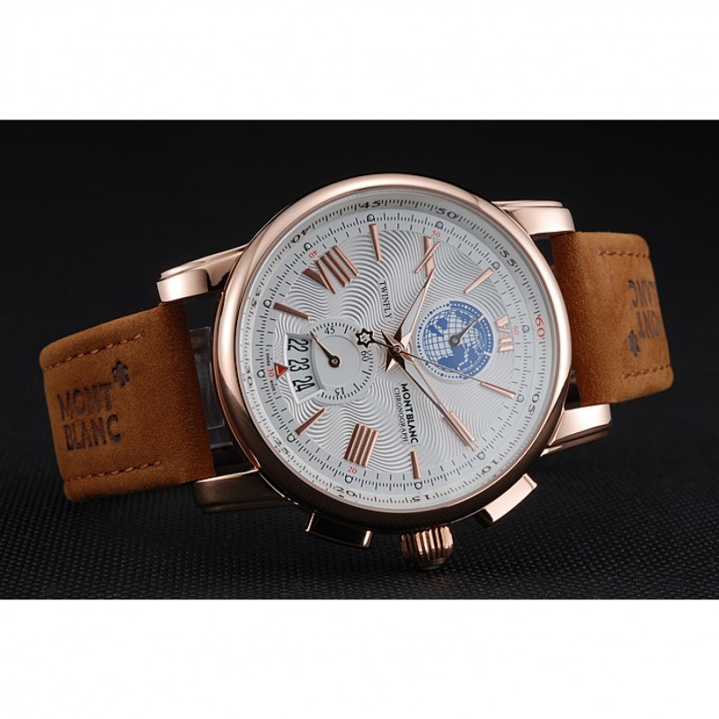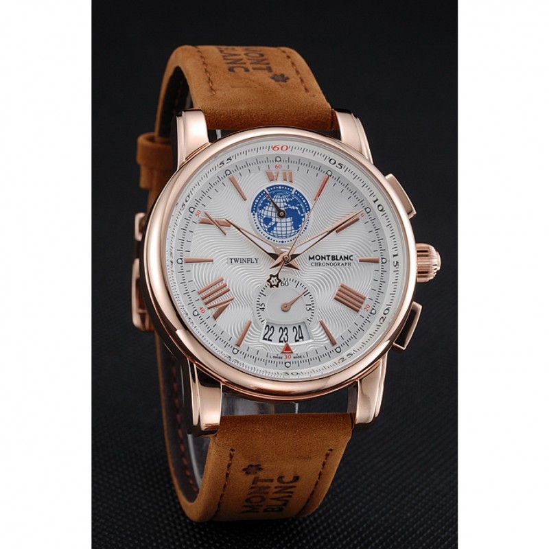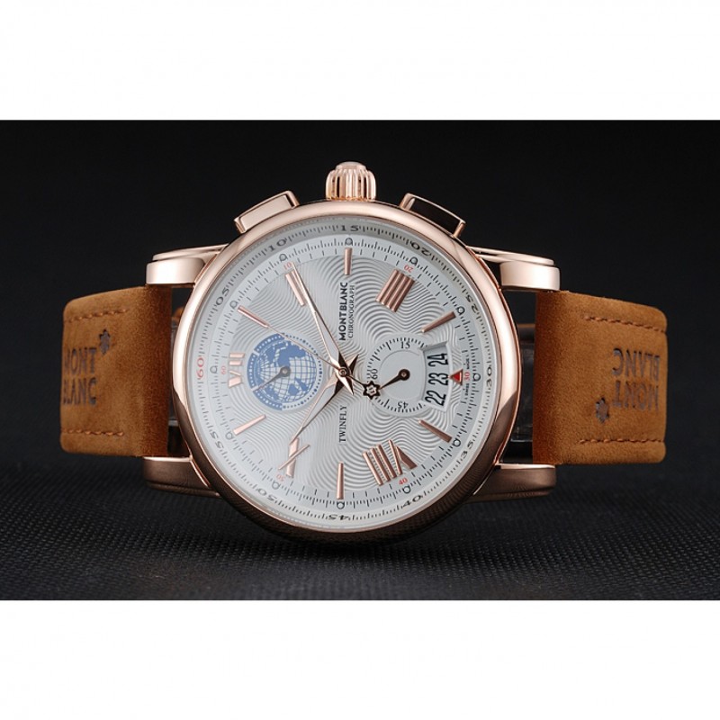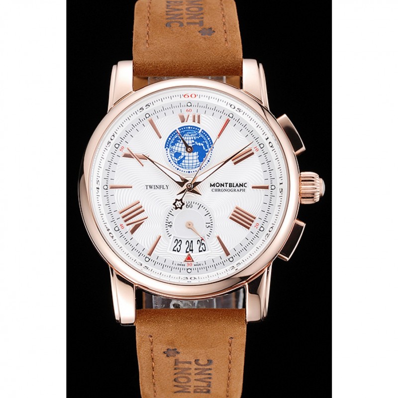 Montblanc Twinfly cronógrafo Esfera Blanca Gamuza marrón Pulsera de cuero 1454116