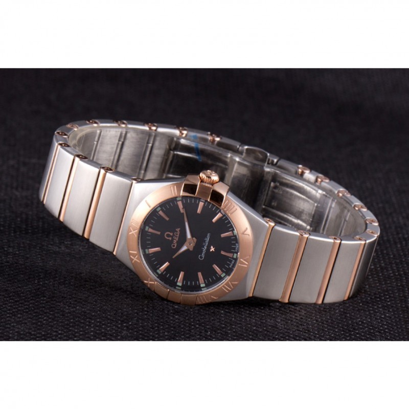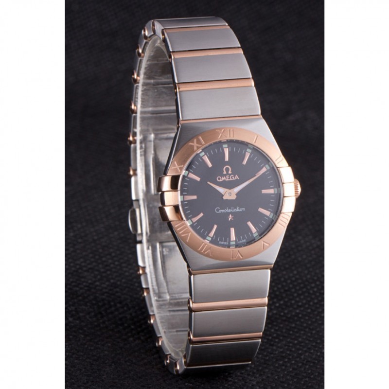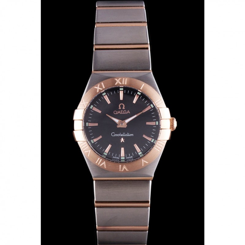 Omega Constellation de oro rosa Bisel de dos bandas de tono som100 621480