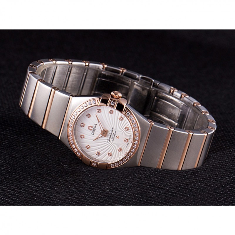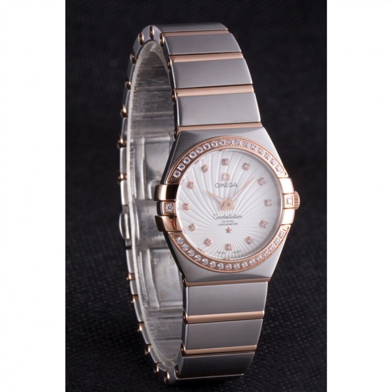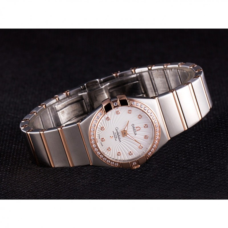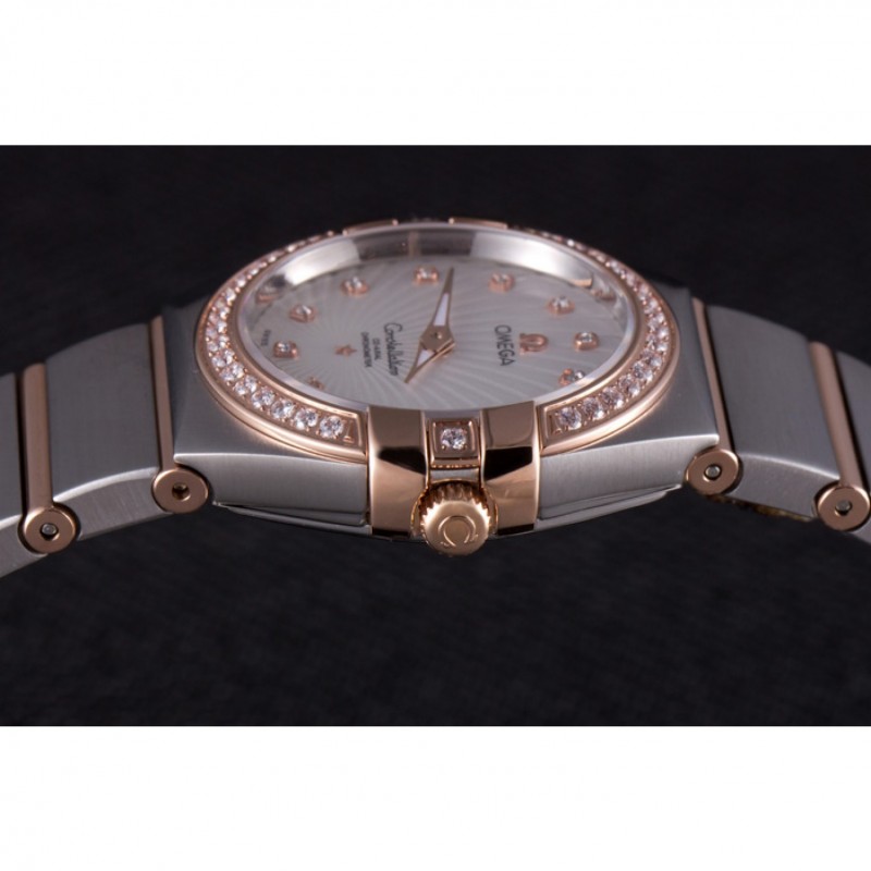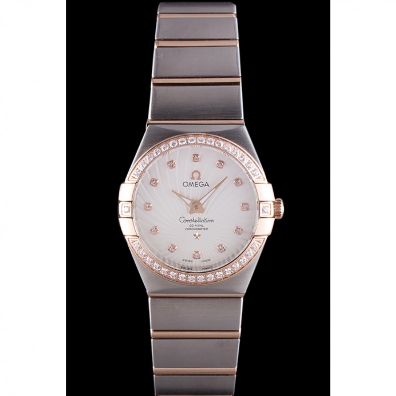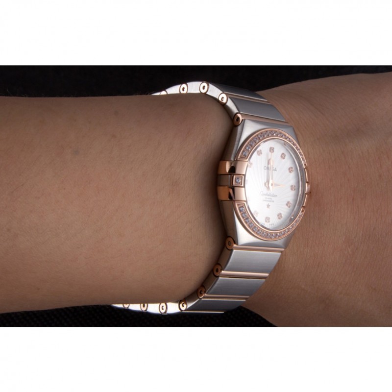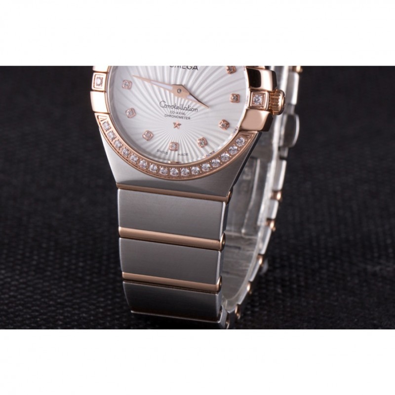 Omega Constellation de oro rosa diamante del bisel de dos bandas de tono 621487