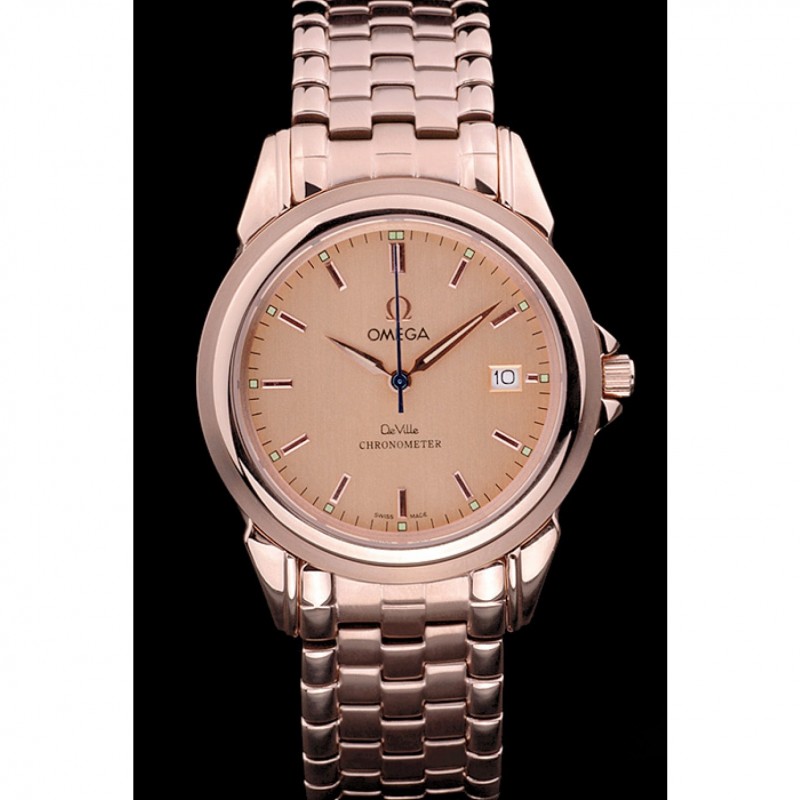 Omega De Ville de oro rosa Dial pulsera de acero inoxidable de oro rosa 1454188