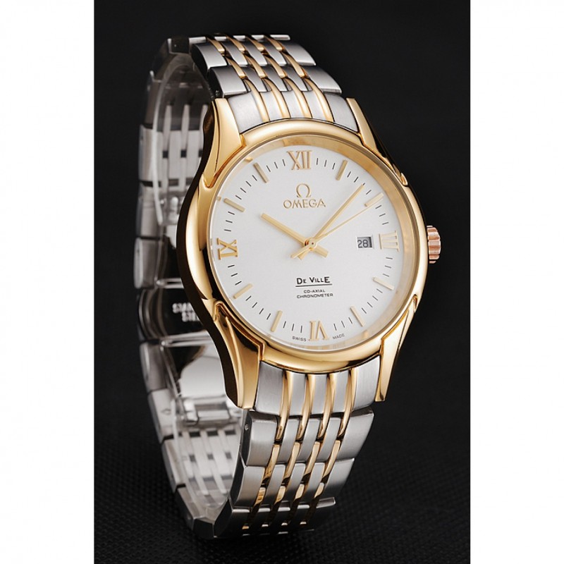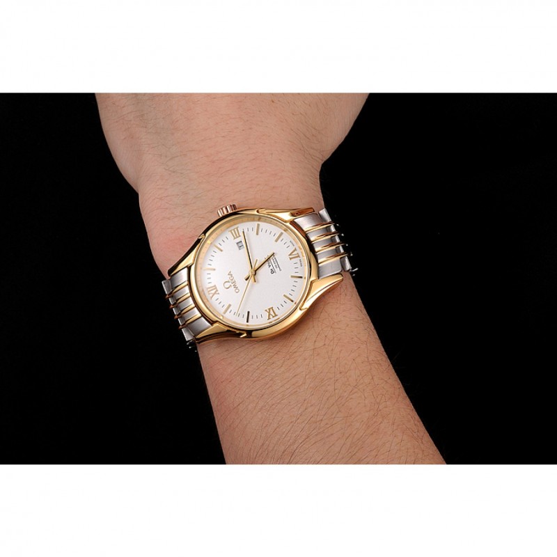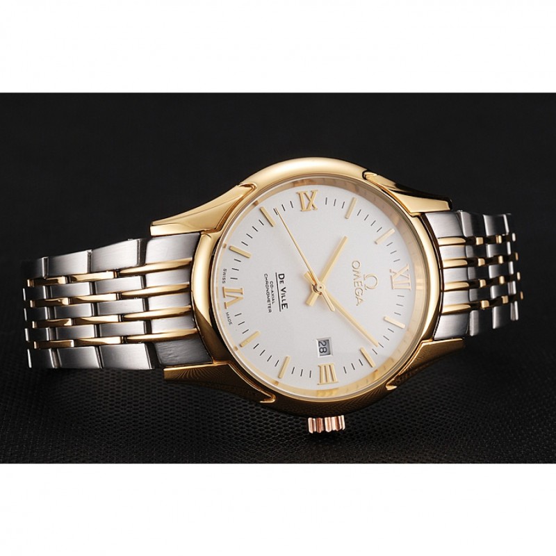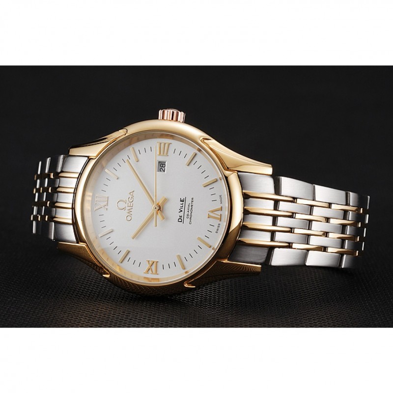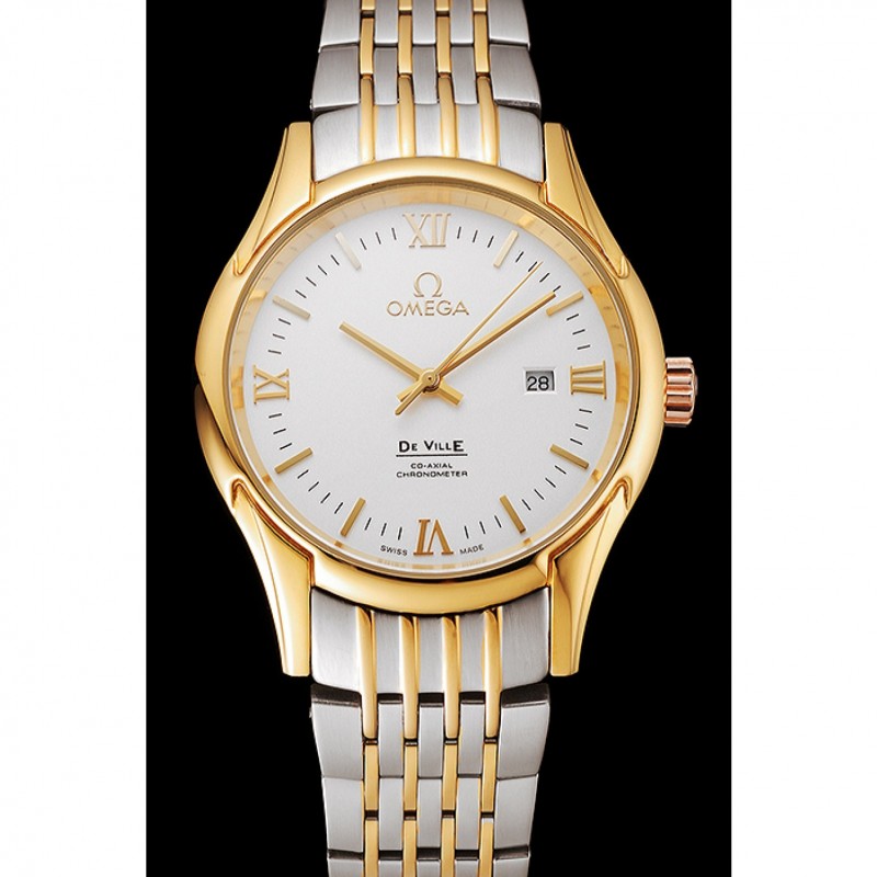 Omega De Ville Esfera Blanca Caja de oro brazalete de dos tonos 1453785