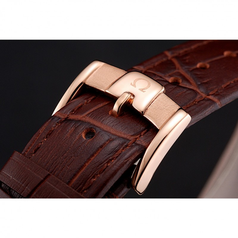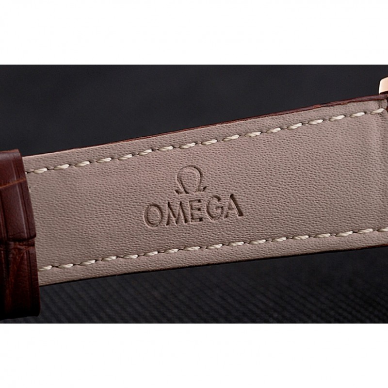 pulsera: Omega y el logotipo correa de piel de cocodrilo marrón en relieve de calor con Omega logotipo de 18k tallado de oro rosa plateado gancho hebilla de cierre