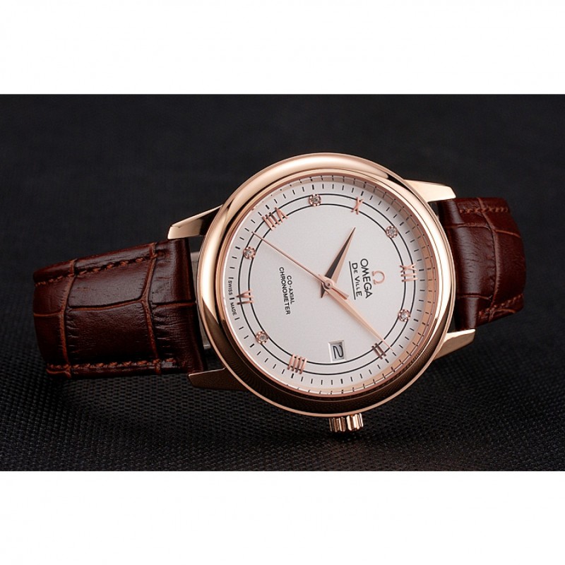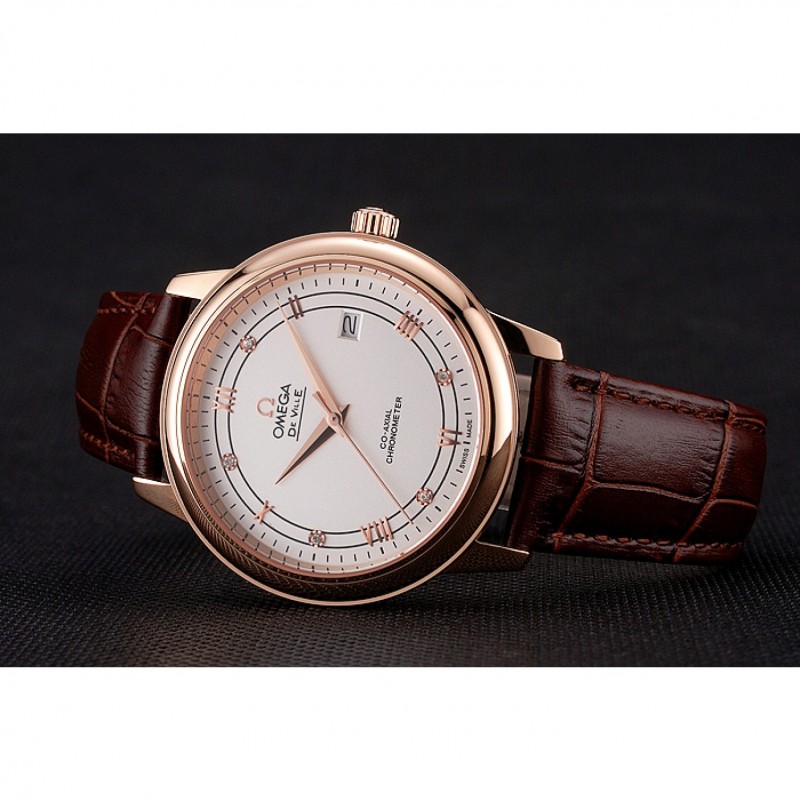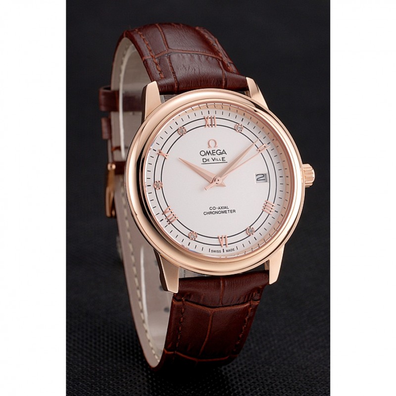 Sé el primero en valorar “Omega De Ville Prestige Blanco Dial correa de cuero de la caja de oro rosa Brown”