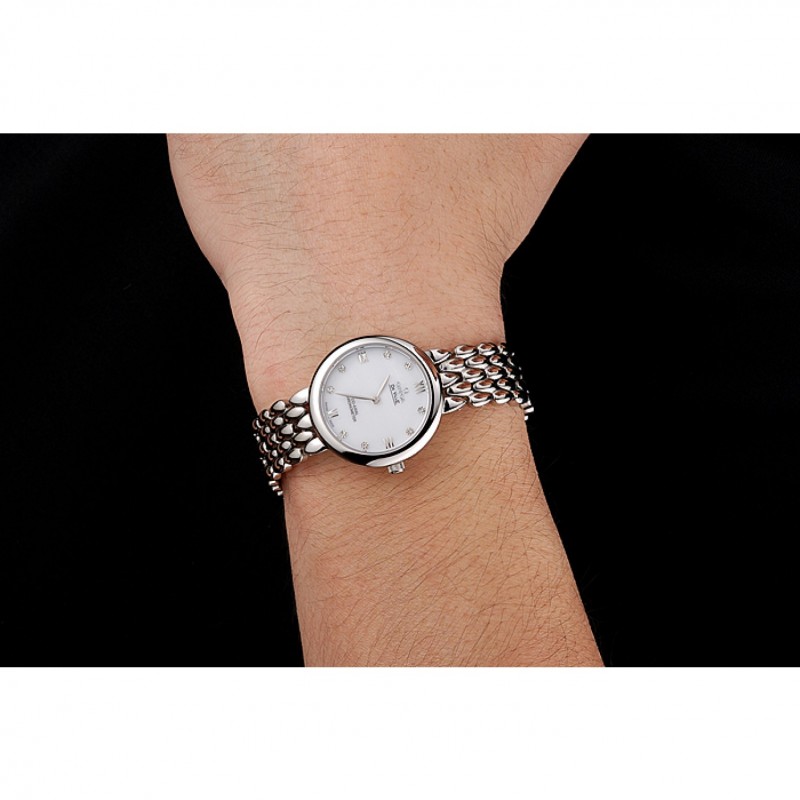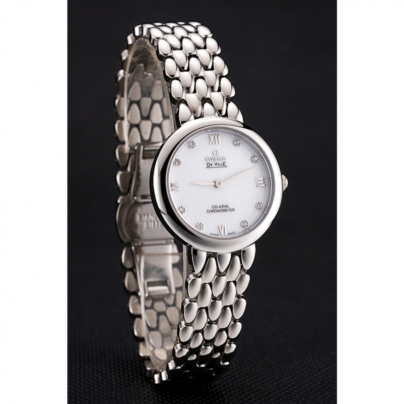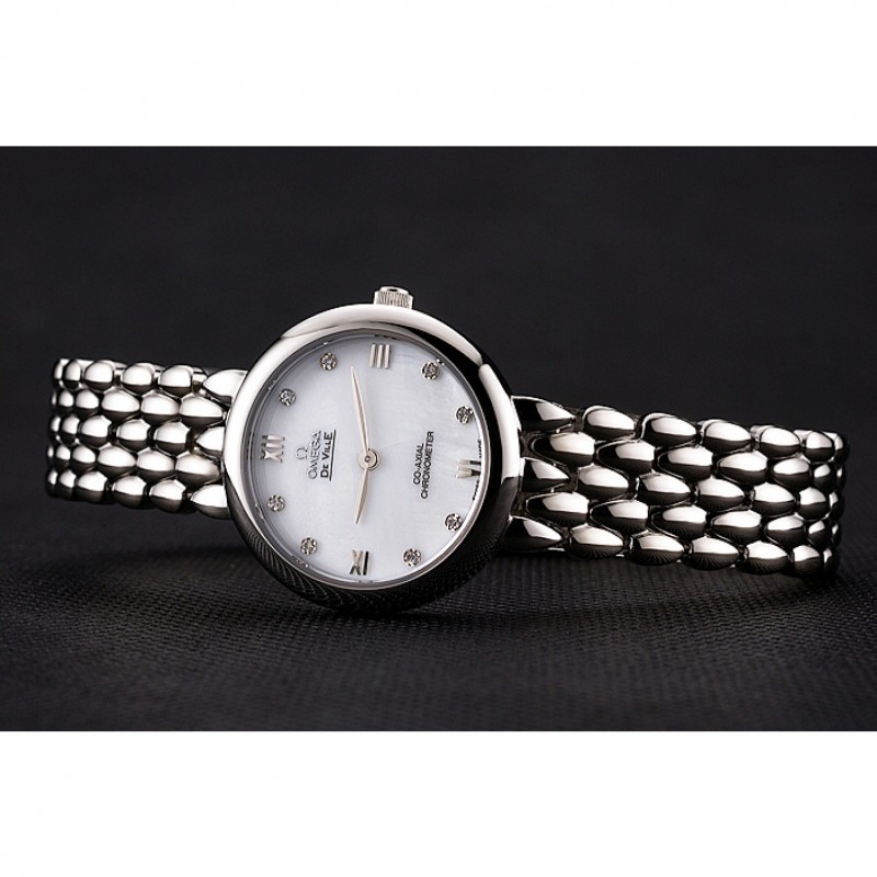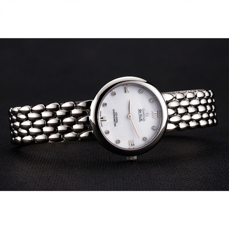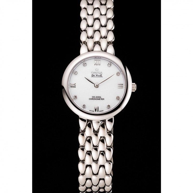Omega De Ville Prestige No Fecha esfera blanca con diamantes caja de acero inoxidable y pulsera