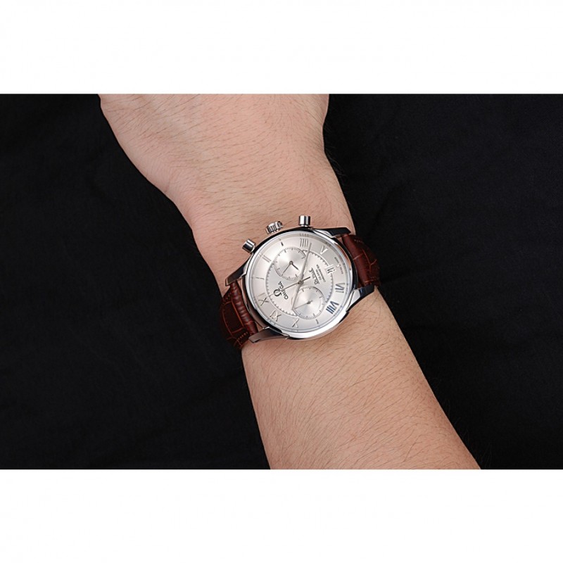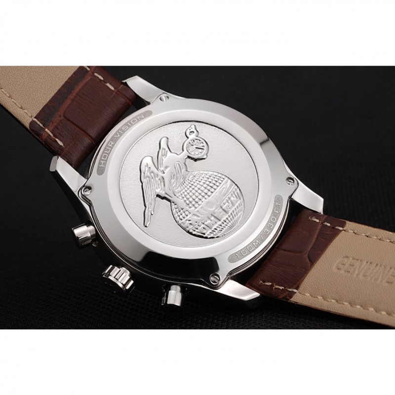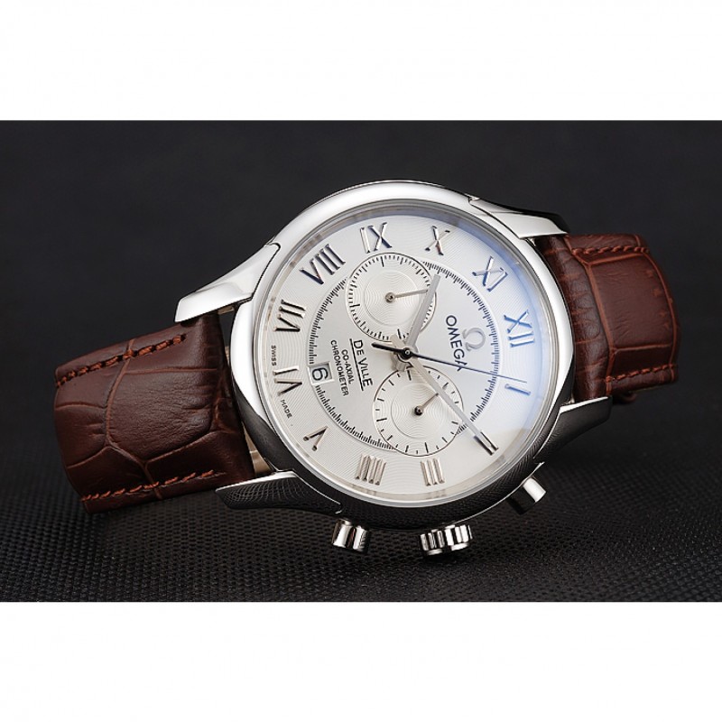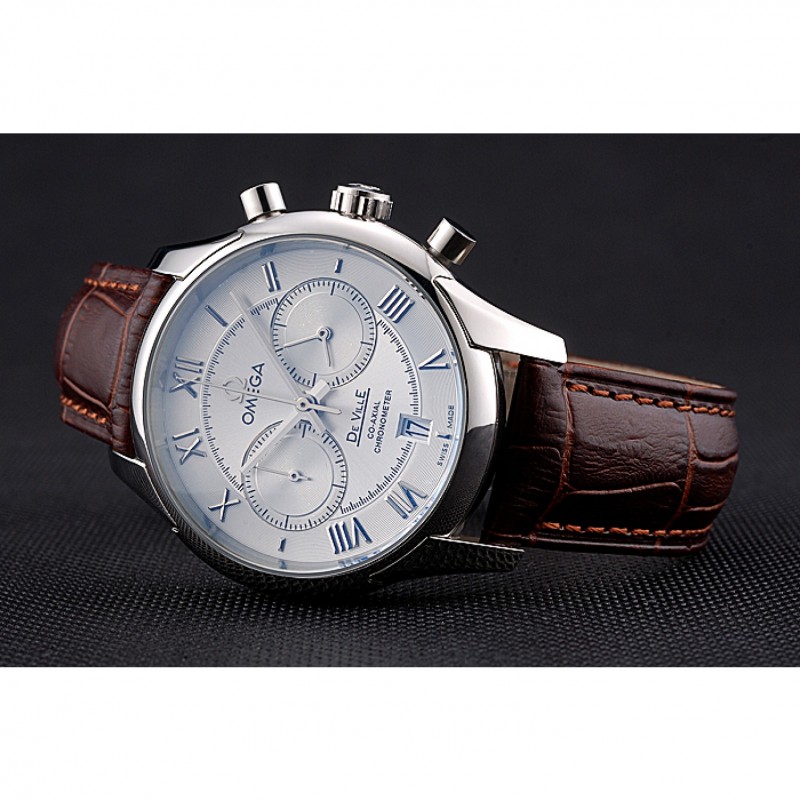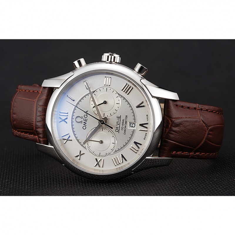 Omega DeVille bisel plateado con esfera blanca y correa de cuero marrón 621566