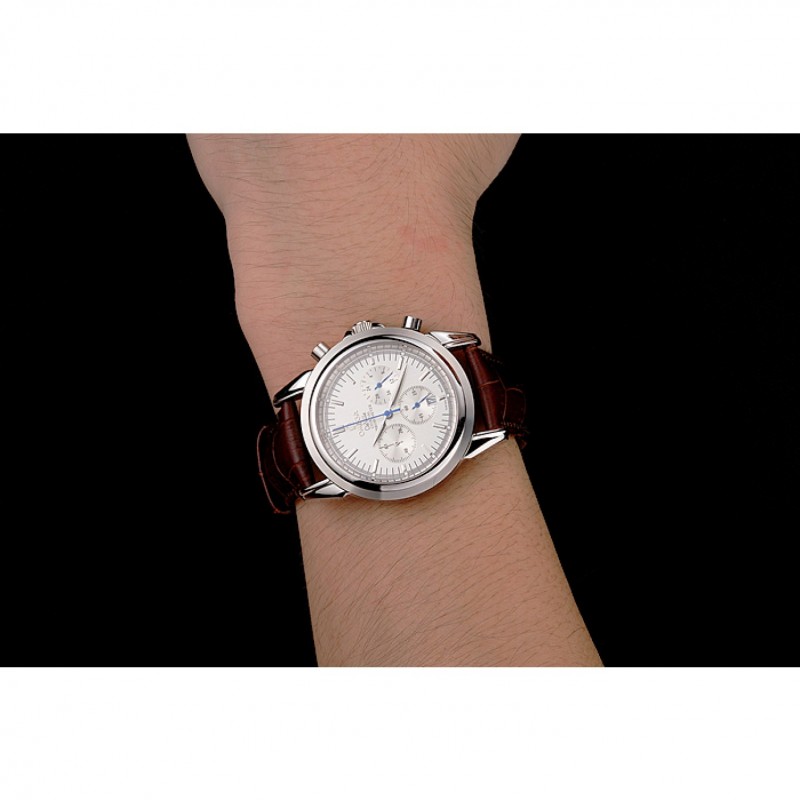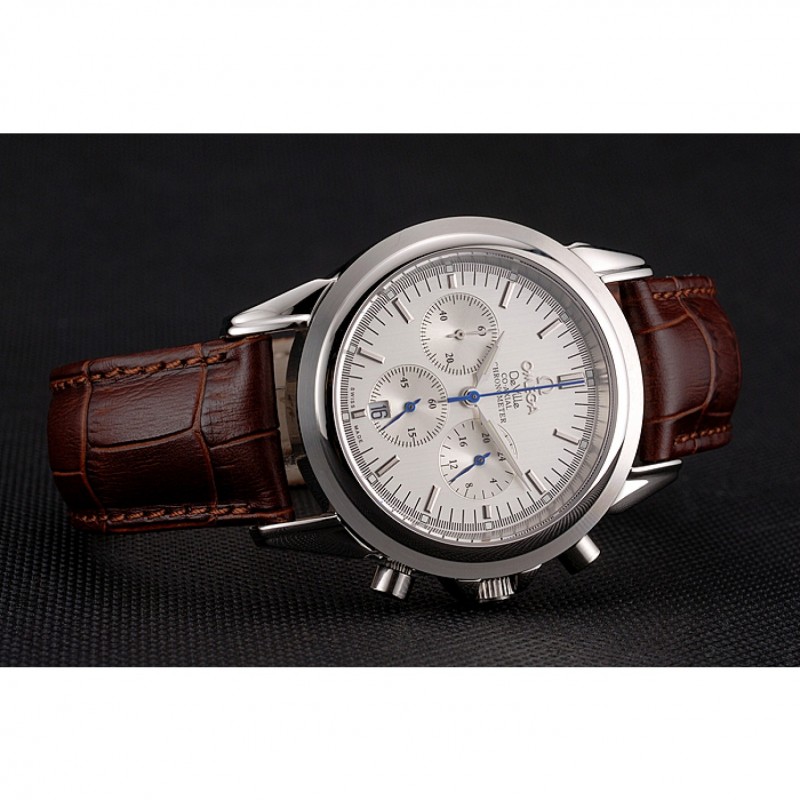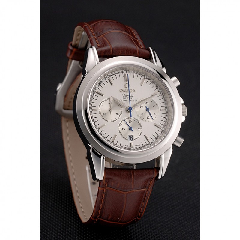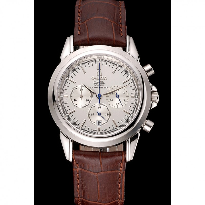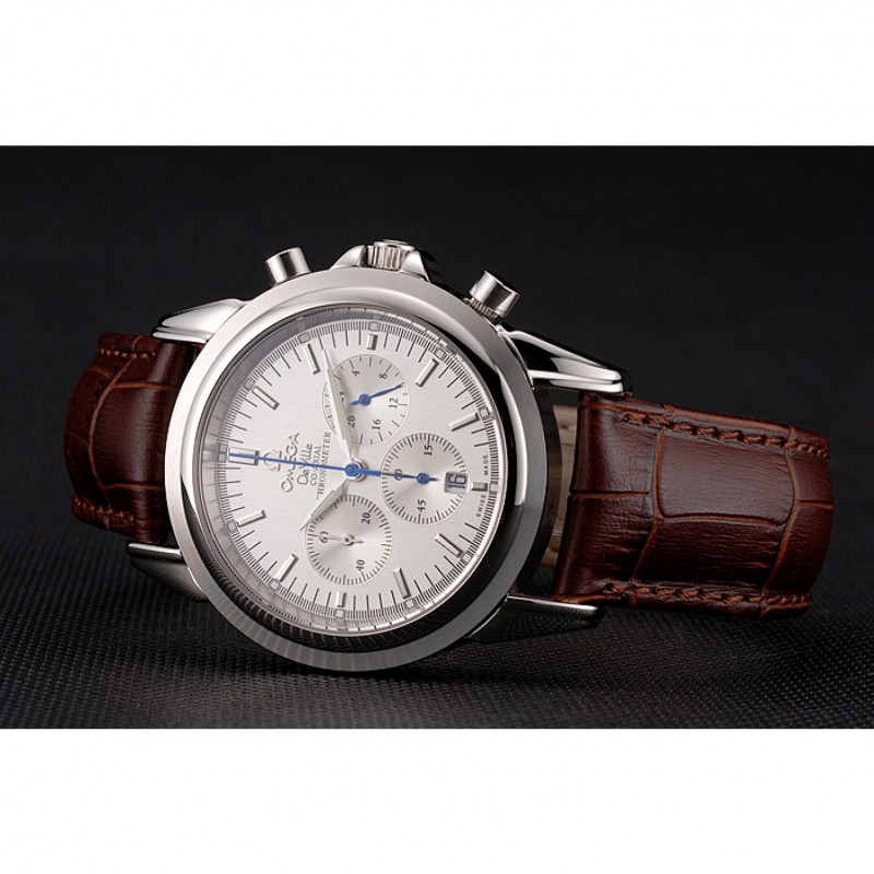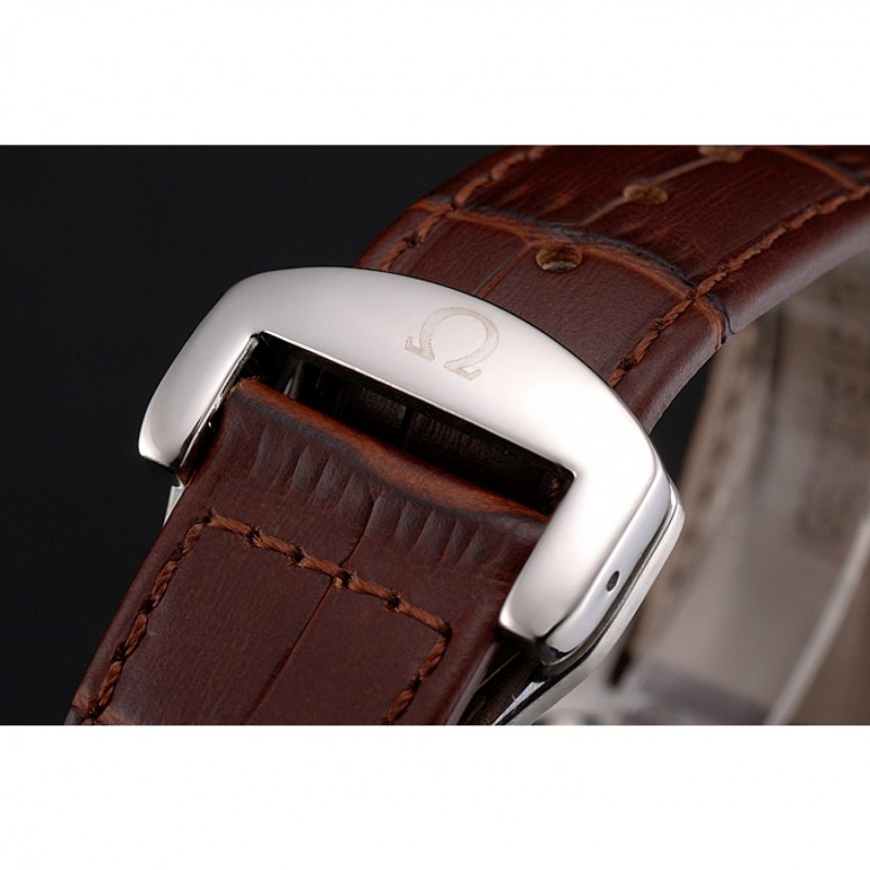 pulsera: Brown correa de piel de cocodrilo con costura blanca y el logotipo de Omega grabado de acero inoxidable gancho hebilla de cierre