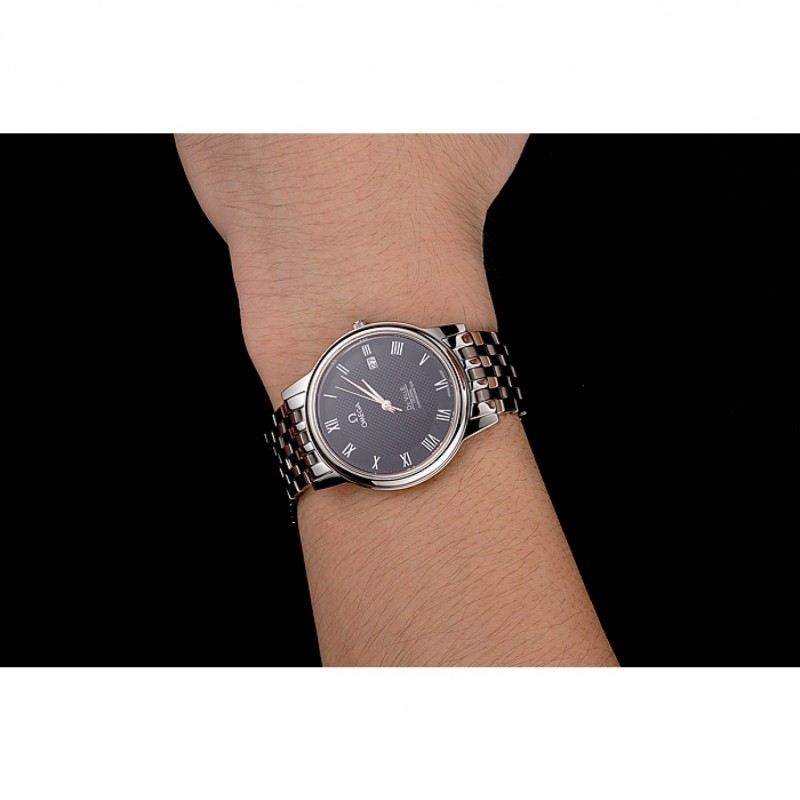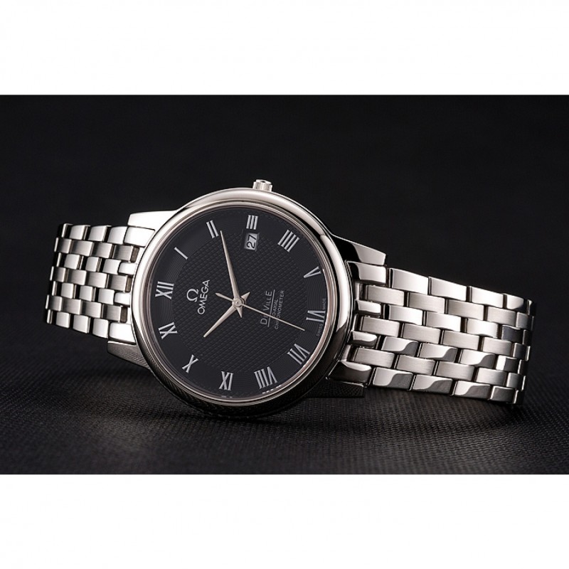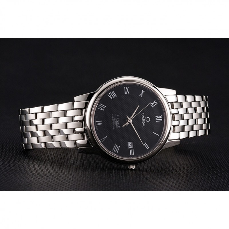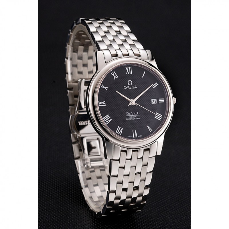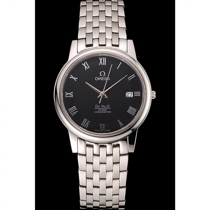 Omega DeVille pulsera de acero inoxidable Dial Negro 621685