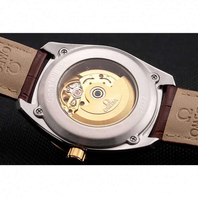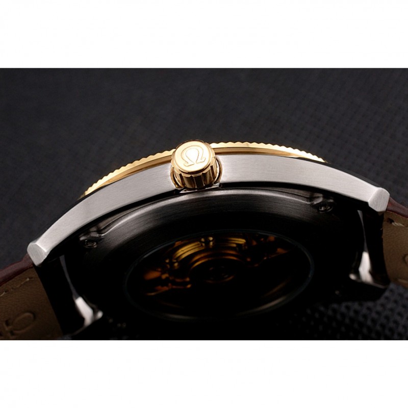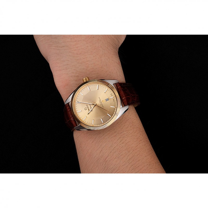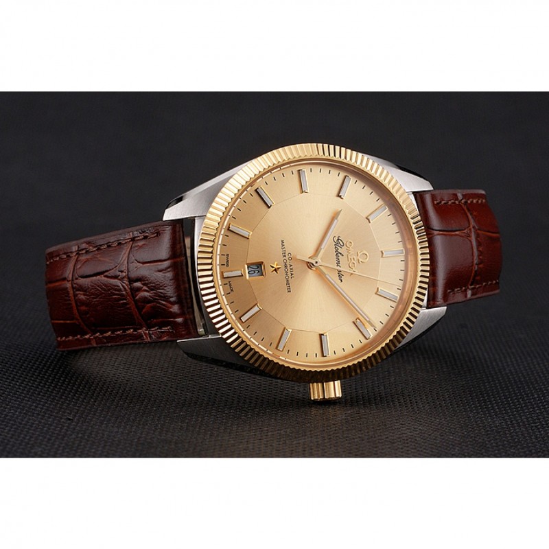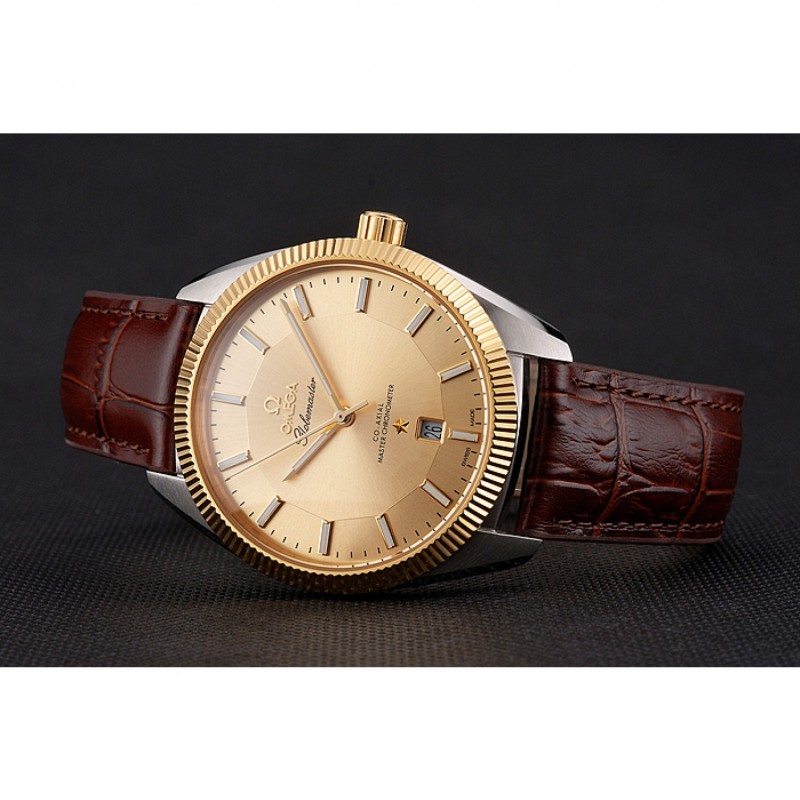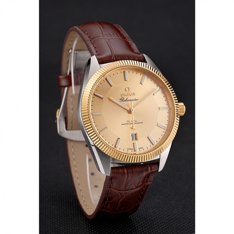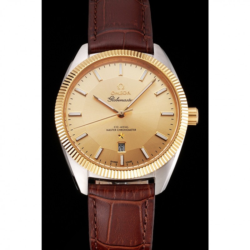 Omega Globemaster Oro Dial y correa de cuero del bisel de acero inoxidable Caso Brown