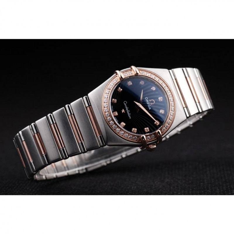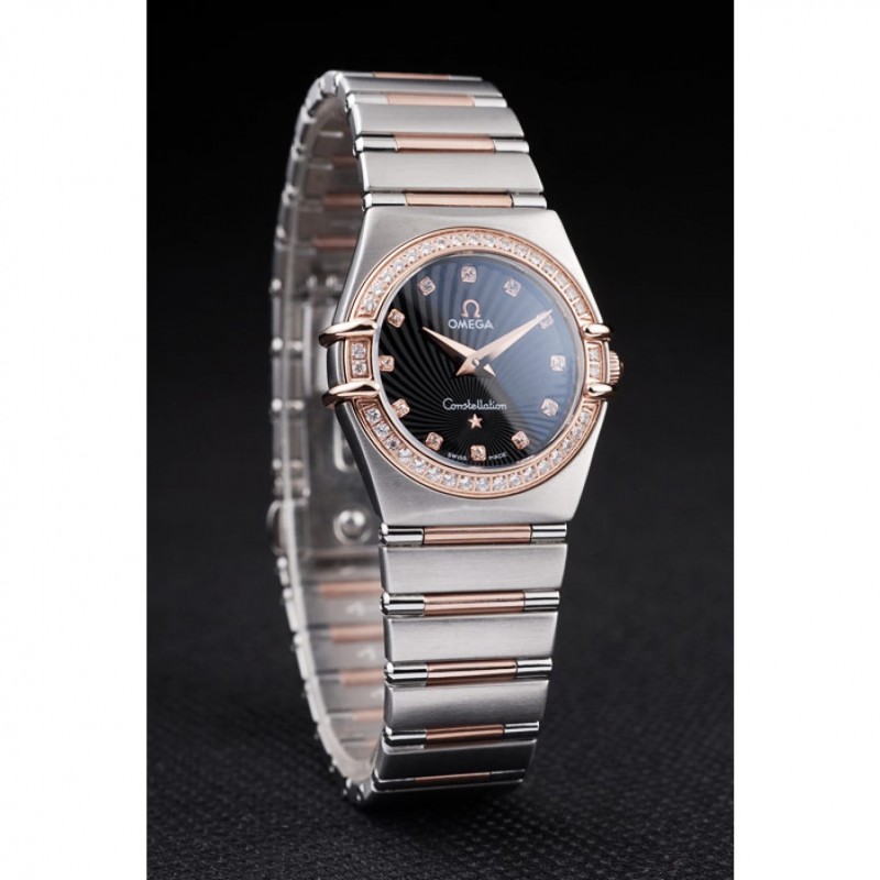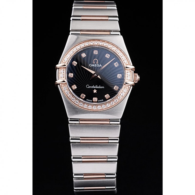 Omega joyería suiza constelación de la caja del diamante radial Emblema Negro Dial 98113