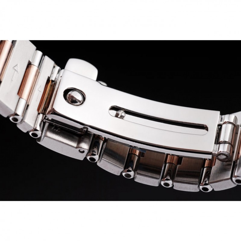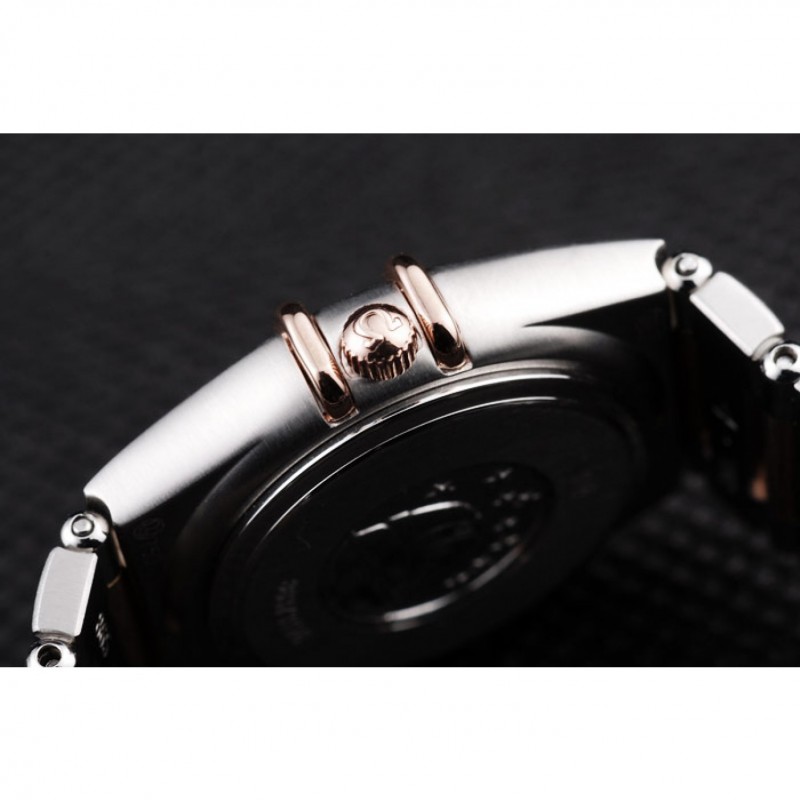 pulsera: cepillado de acero inoxidable y la cadena de acoplamiento rosa-oro pulsera con cierre oculto y el logotipo de Omega en la parte superior
