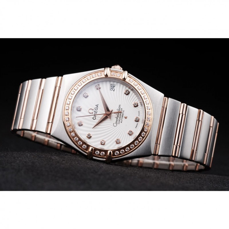 Omega joyería suiza constelación de marcación diamante caso radial distintivo blanco