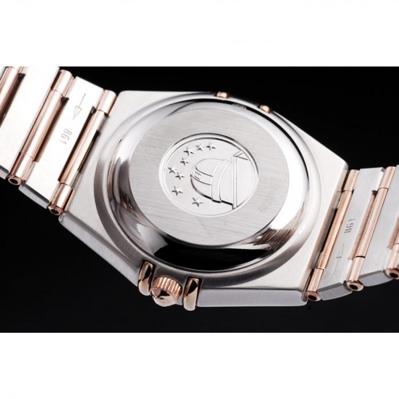 pulsera: cepillado de acero inoxidable y la cadena de acoplamiento rosa-oro pulsera con cierre oculto y el logotipo de Omega en la parte superior