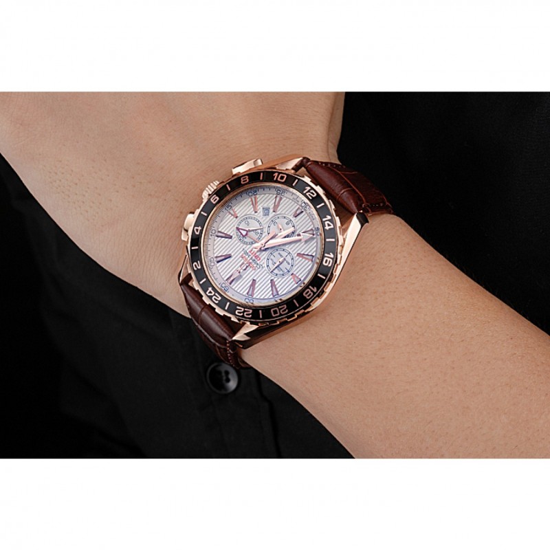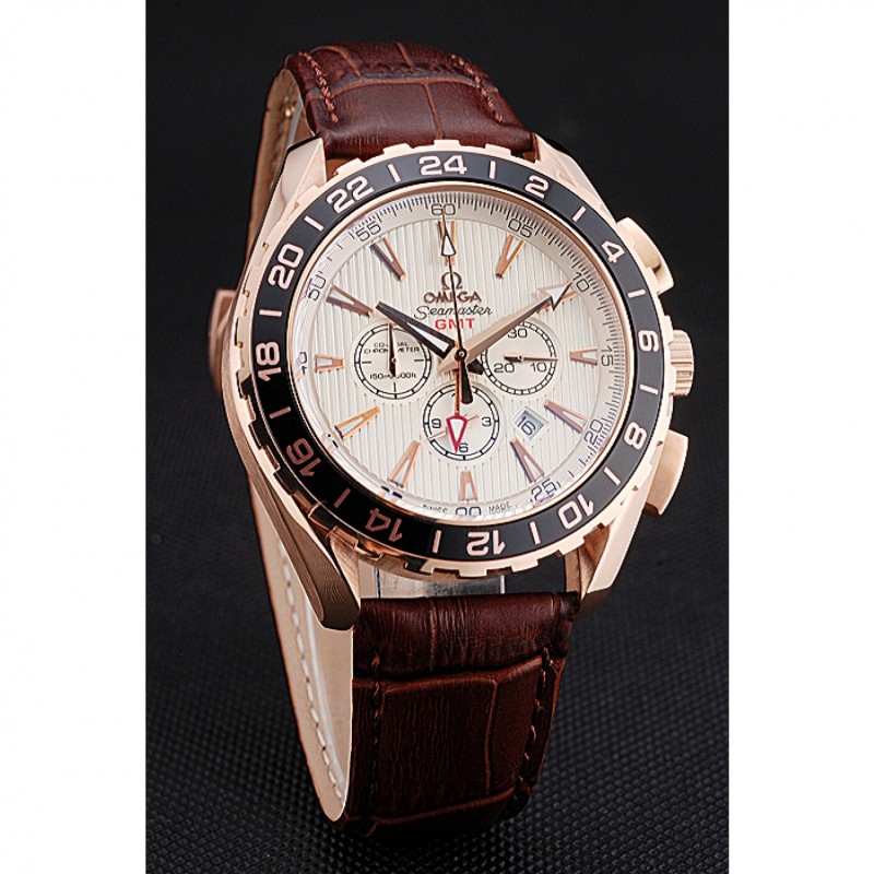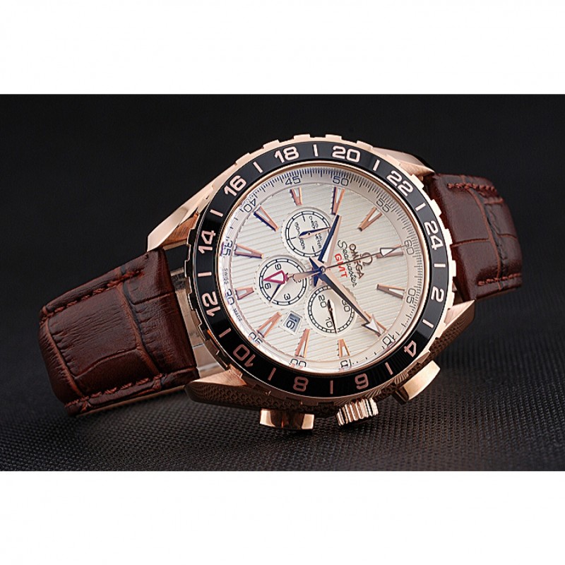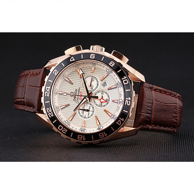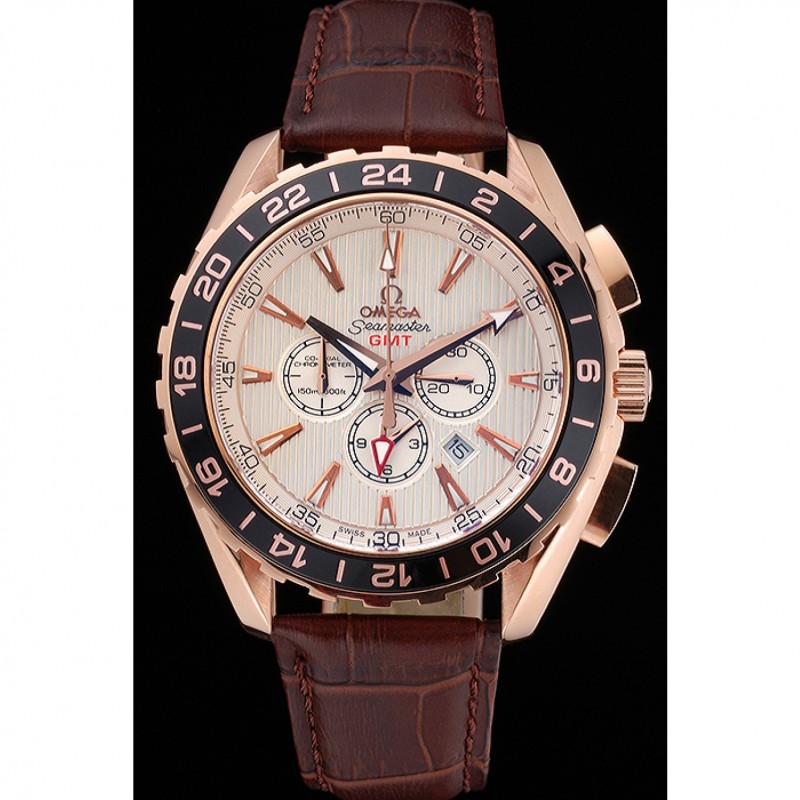 Omega Seamaster Aqua Terra Chrono GMT Marfil Dial de cuero marrón pulsera 622534