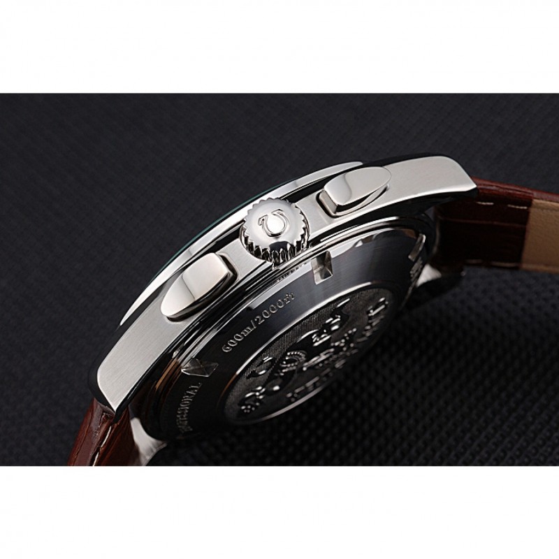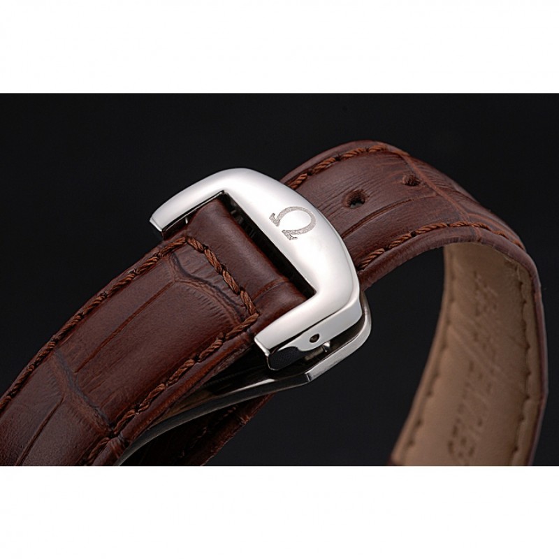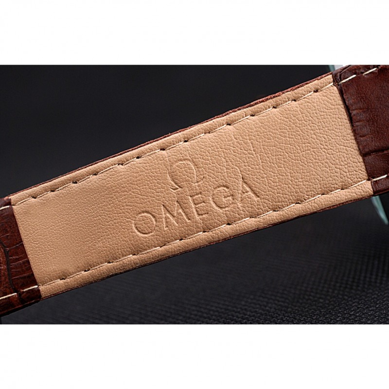 pulsera: logotipo y calor Omega en relieve correa de piel de cocodrilo marrón con el logo grabado broche de cepillado gancho de acero inoxidable