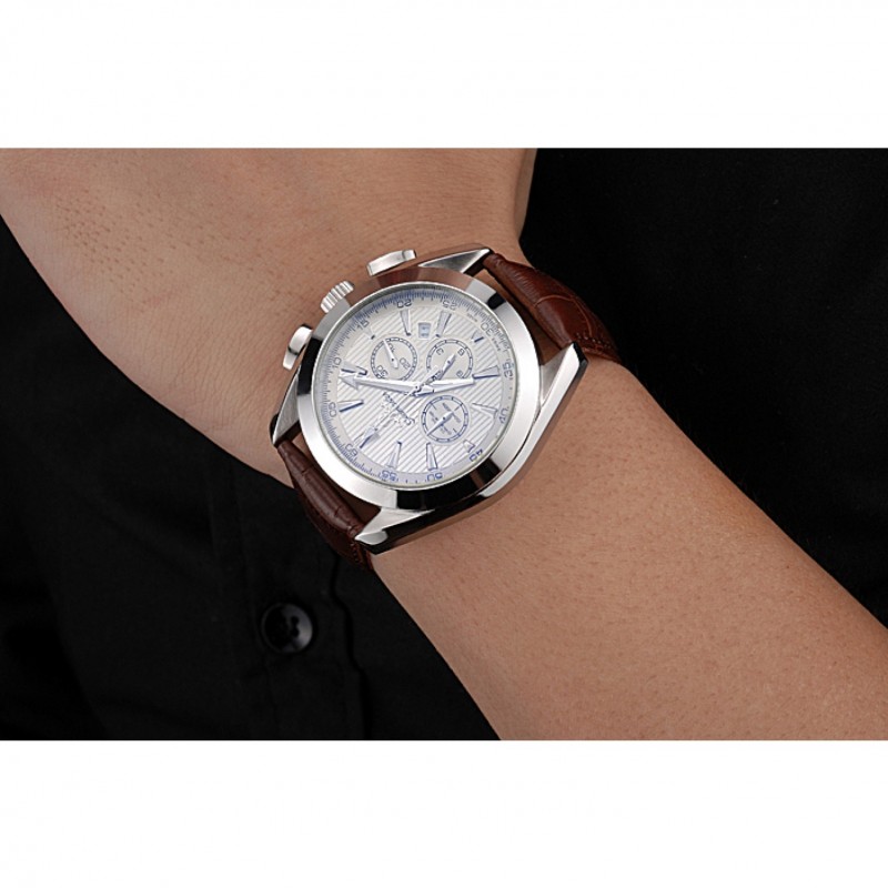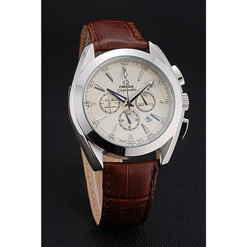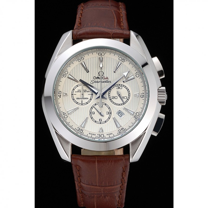 Omega Seamaster Aqua Terra cronógrafo de Marfil Dial de cuero marrón pulsera 622529