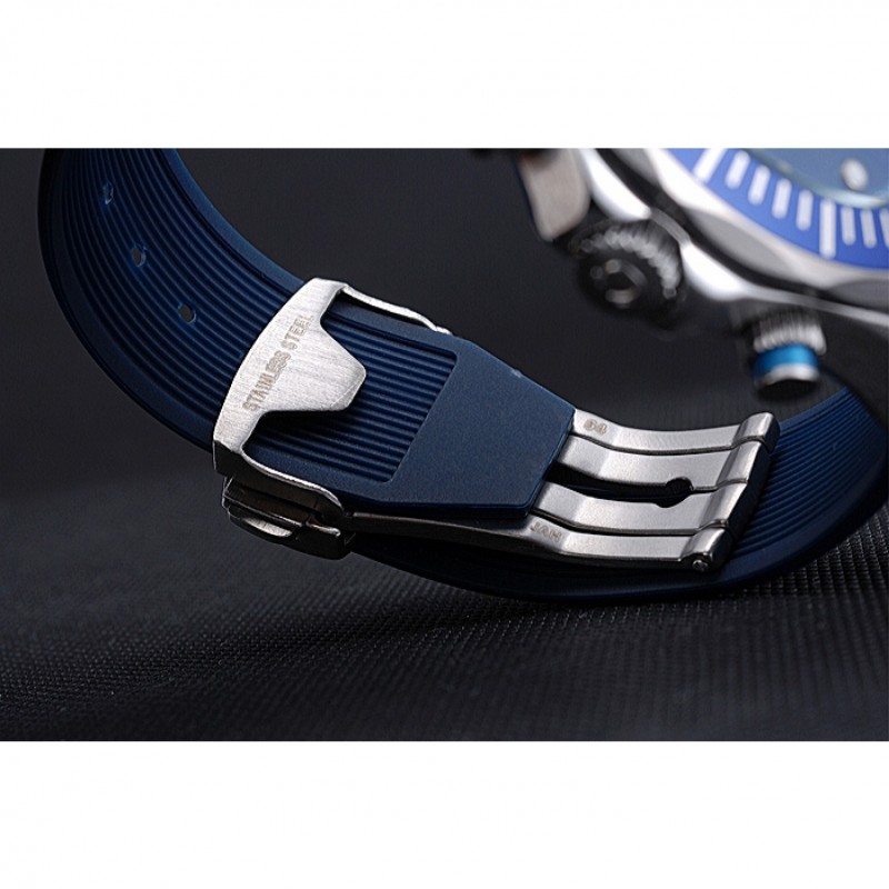 Crown: logo Omega grabado pulido corona cutwork de acero inoxidable con azul tira de esmalte pulsador ronda corona en cada lado de ella, más un logo grabado pulido corona cutwork de acero inoxidable en la esquina superior opuesta