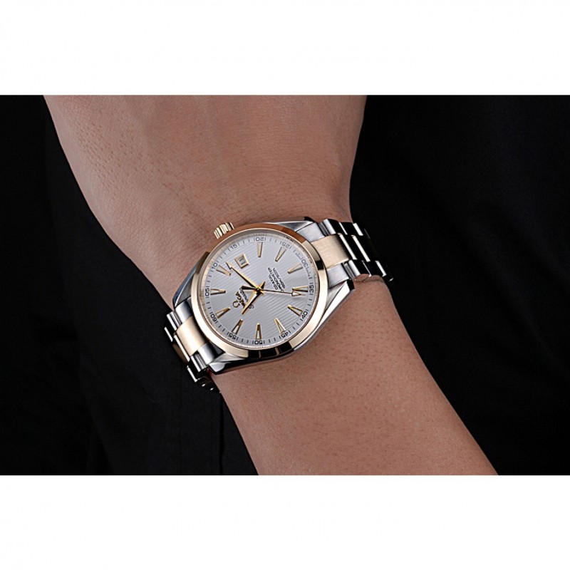 ¡Excelente compra! Este reloj tiene un diseño impresionante con su bisel de 18k oro rosa y esfera blanca. La calidad de la marca Omega se refleja en cada detalle. El movimiento automático es muy preciso, y la pulsera de acero inoxidable es cómoda y elegante. Perfecto para cualquier ocasión. ¡Altamente recomendado!