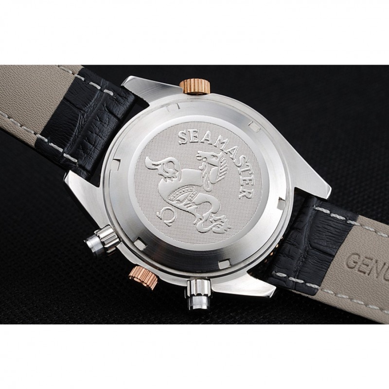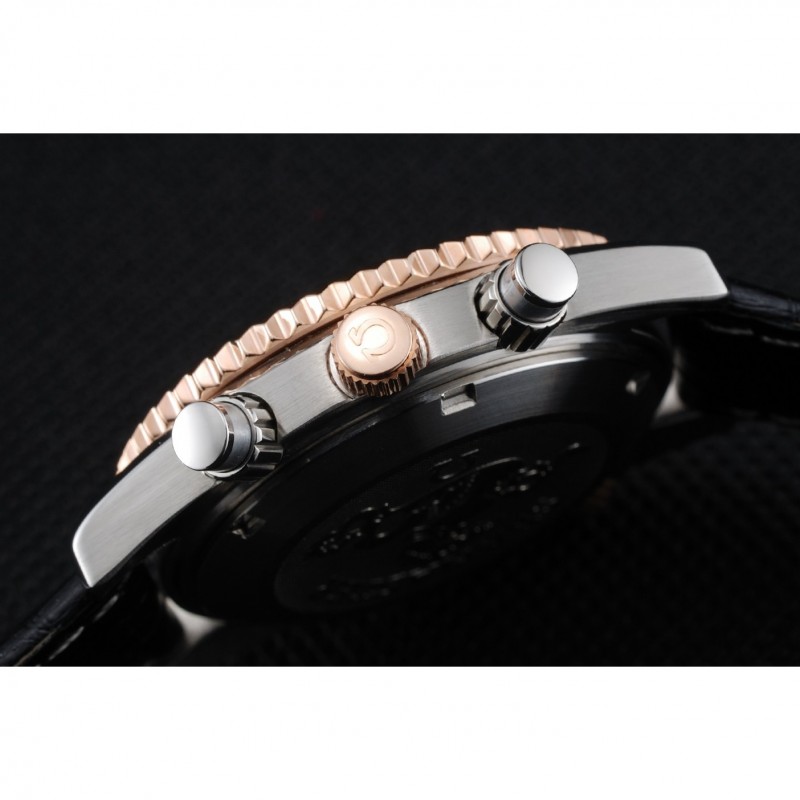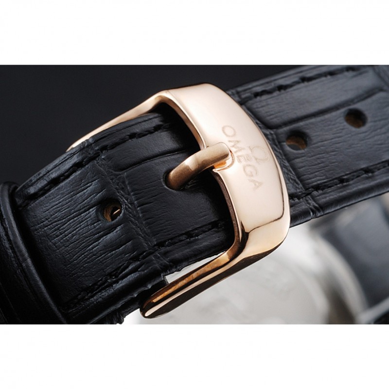 Crown: 18K rose-chapado en oro corona cutwork con logo Omega y una corona de botón en cada lado de ella, más un pulido corona cutwork de acero inoxidable en el lado opuesto lado
