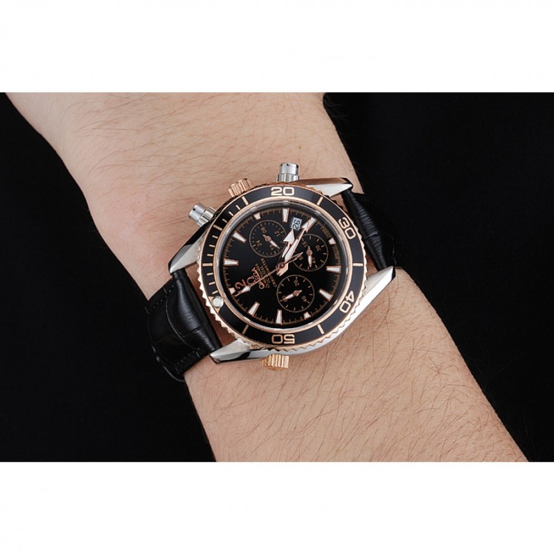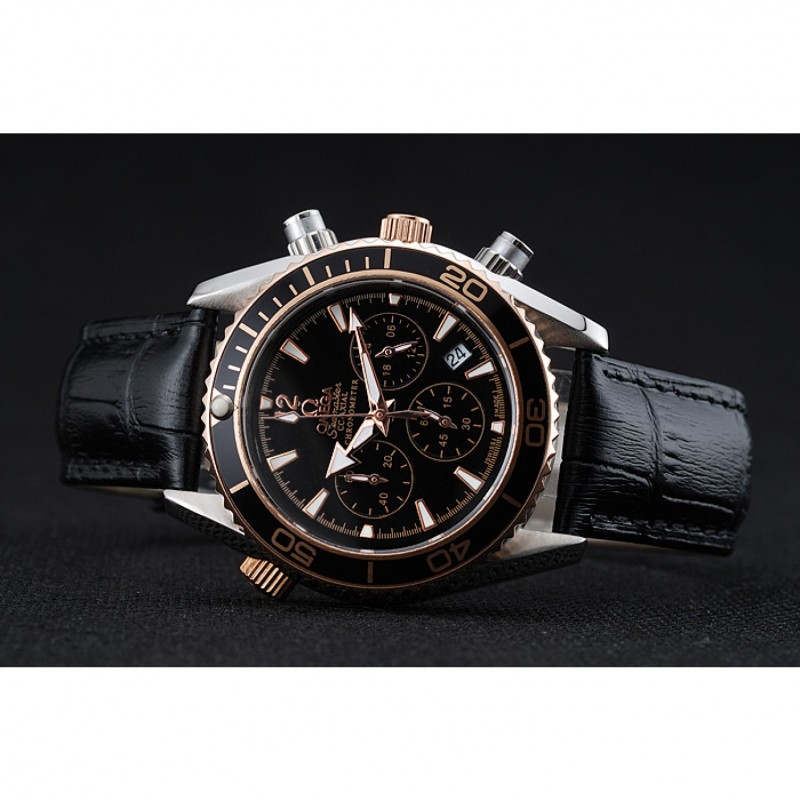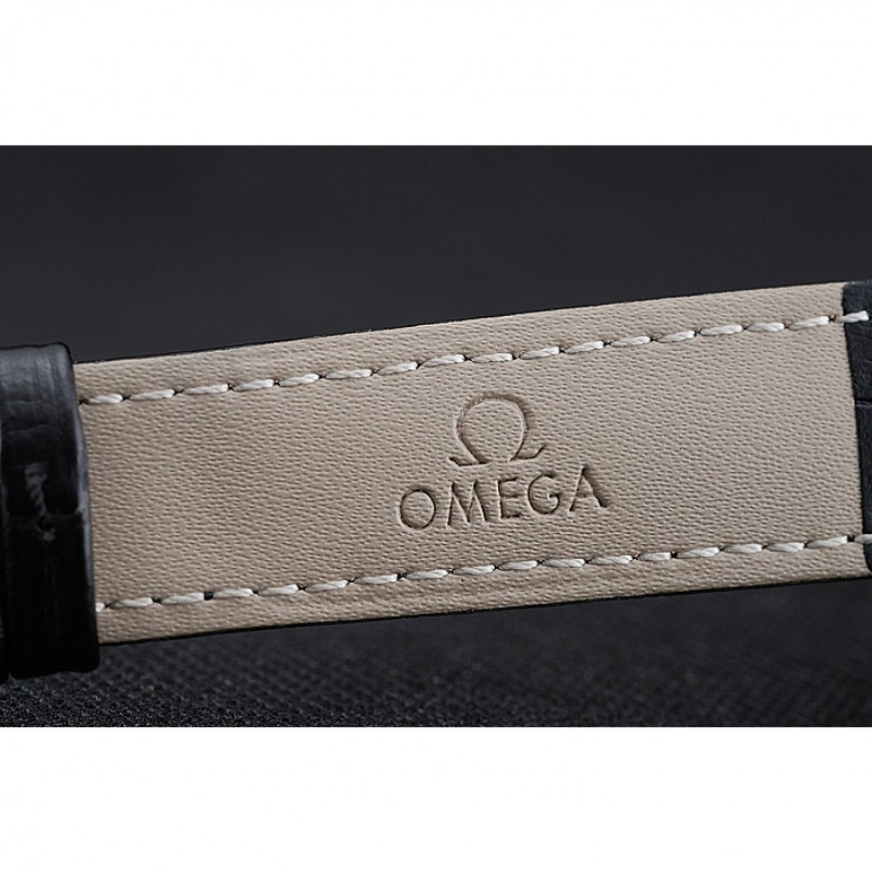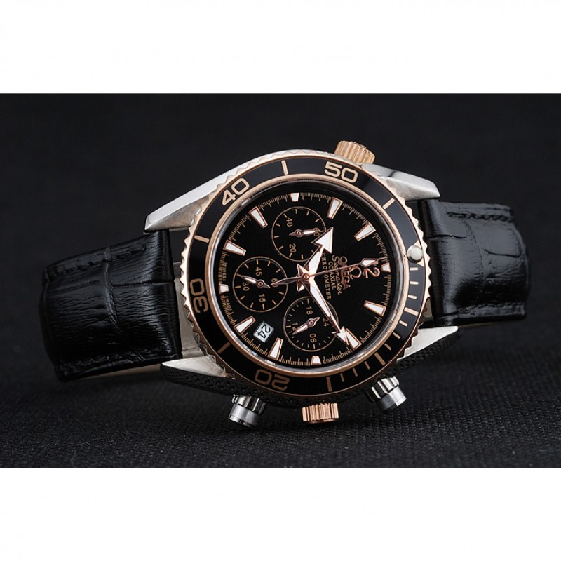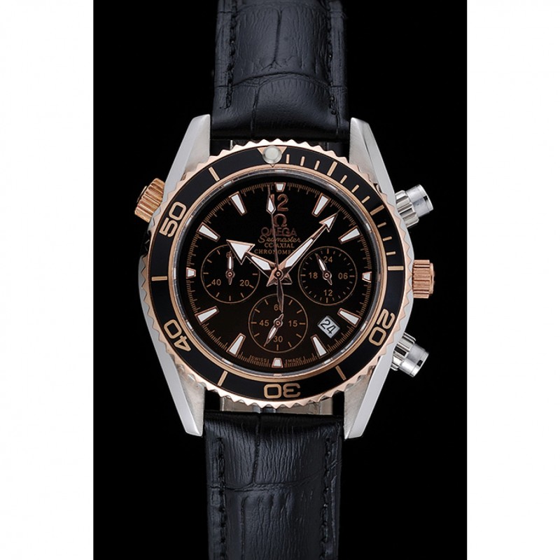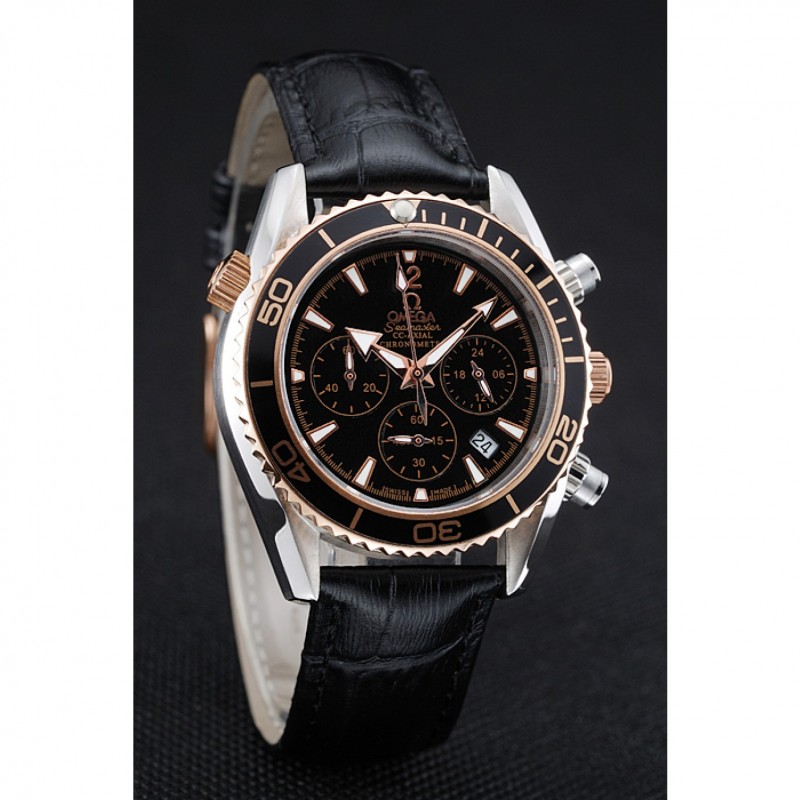 pulsera: correa de piel de cocodrilo calor Omega en relieve patente negro con Omega inscrito 18K rose-chapado en oro de gancho hebilla de cierre