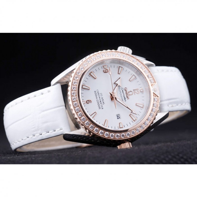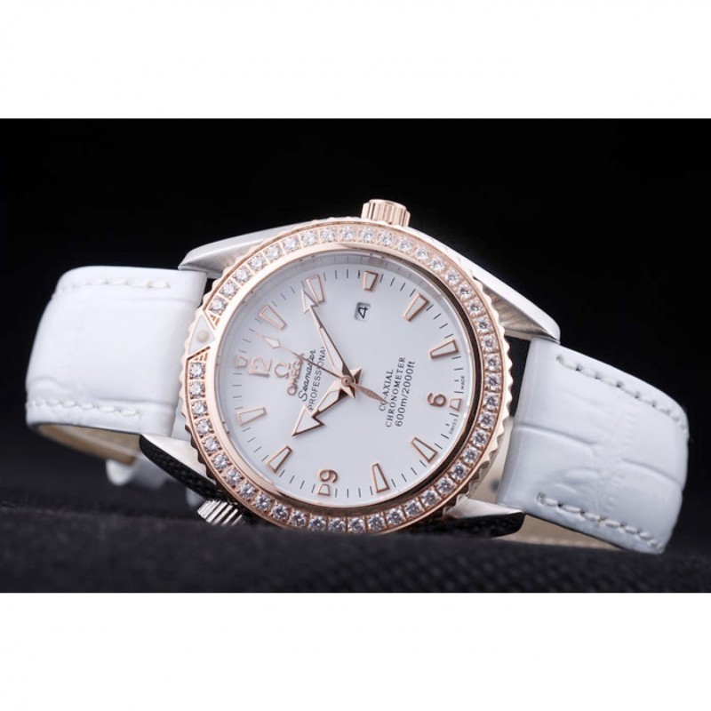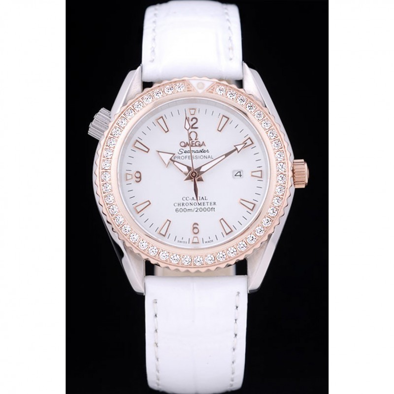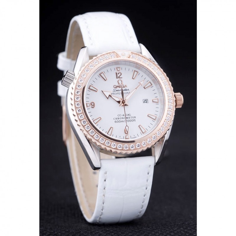 Crown: 18K rose-chapado en oro corona cutwork con logo Omega además de una corona cutwork acero inoxidable pulido con logo en el lado opuesto