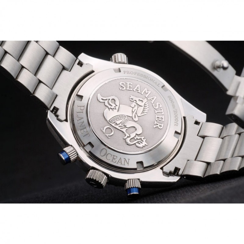 Volver: de acero inoxidable pulido se enganchen en su espalda con el logotipo de Omega y grabados Planeta Océano Seamaster
