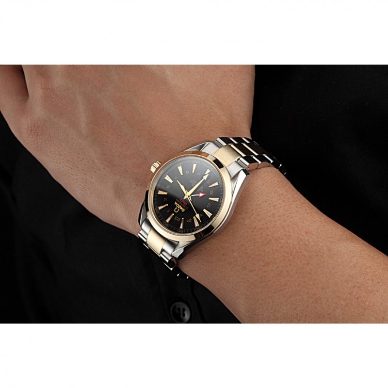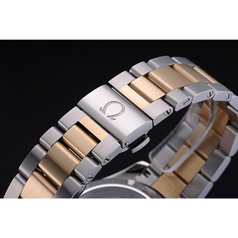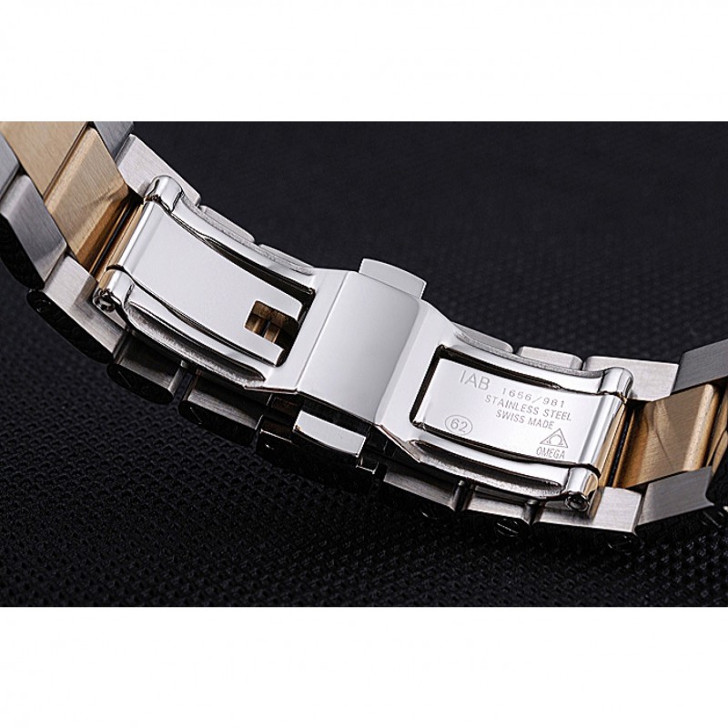 pulsera: 18k oro amarillo y cepillado de eslabones de acero inoxidable pulsera con el logo Omega grabado de liberación empuje del corchete