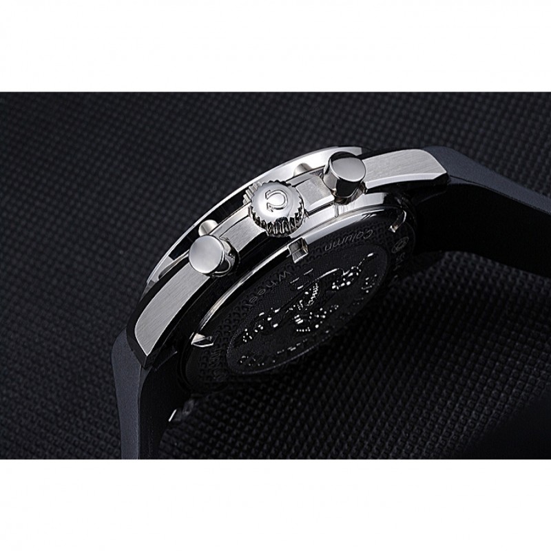 pulsera: correa de caucho negro en relieve calor Seamaster con logo Omega grabado plegable en acero inoxidable cepillado gancho de liberación empuje corchete