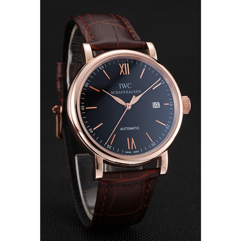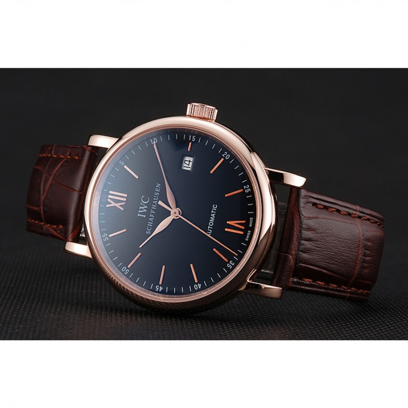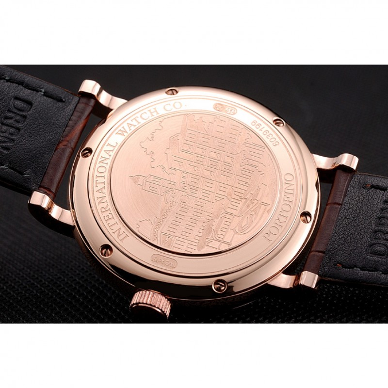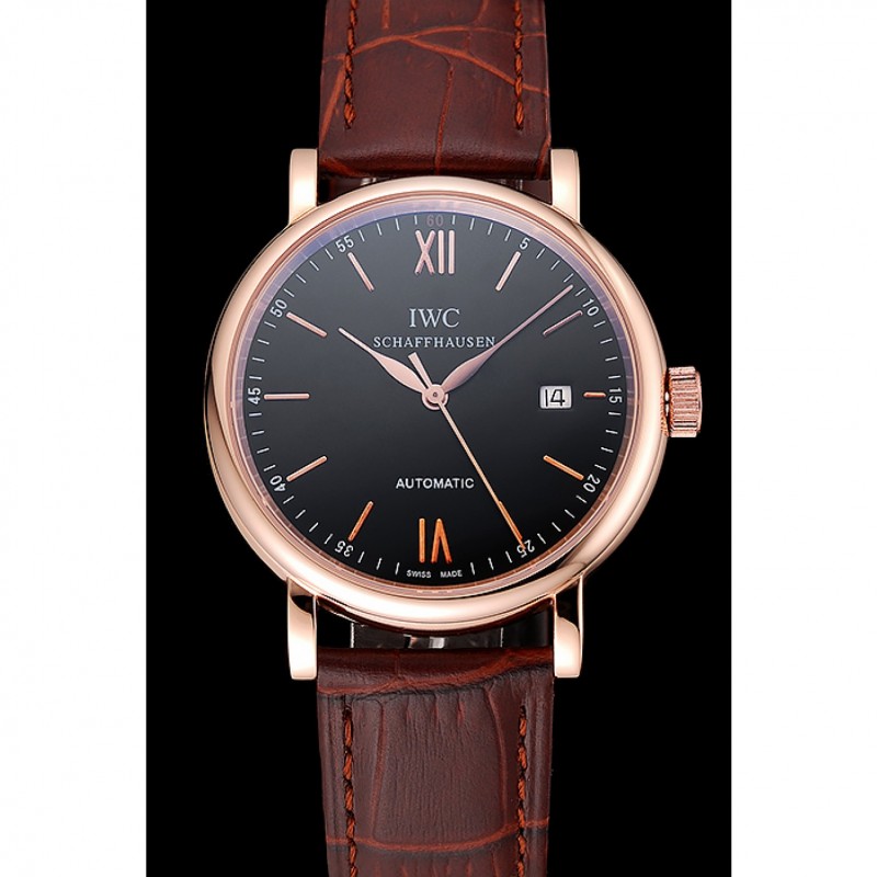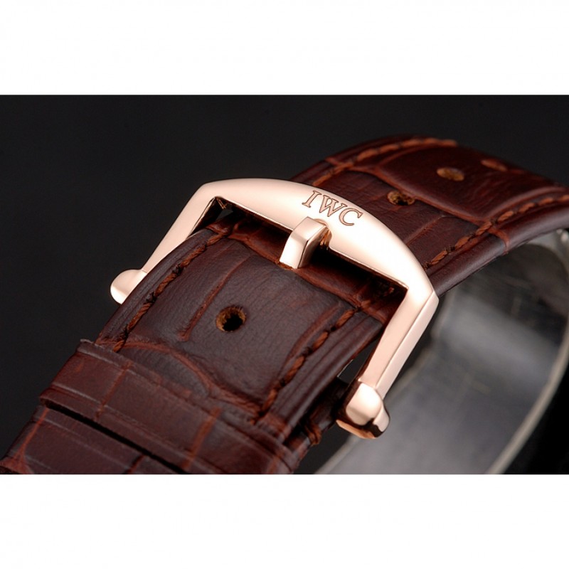 Oro suizo IWC Portofino Caso Negro Dial de cuero marrón pulsera 622669