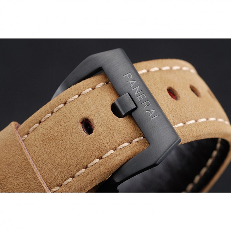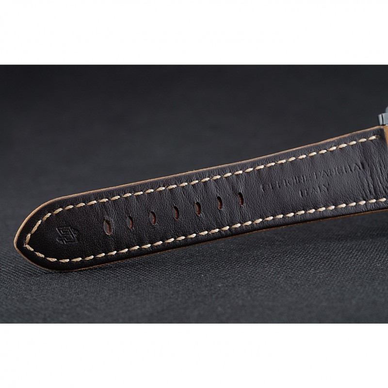 pulsera: relieve Officine Panerai Italia calor correa de piel de cocodrilo marrón con costuras de hilo blanco y Panerai grabado ion-plateado gancho hebilla de cierre