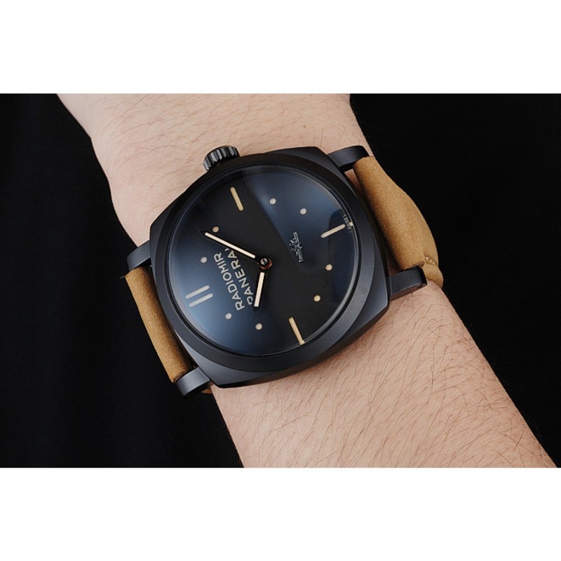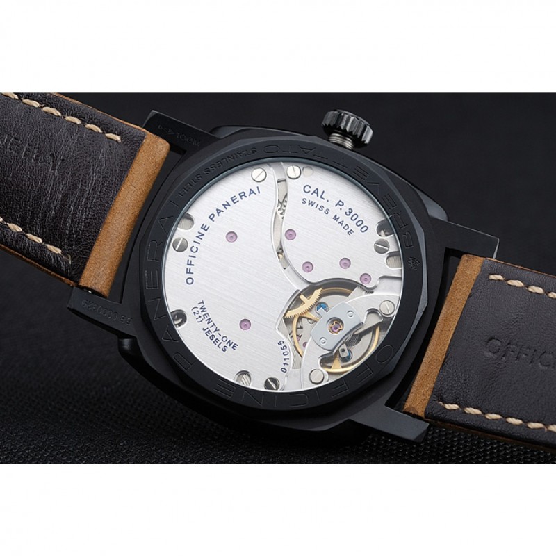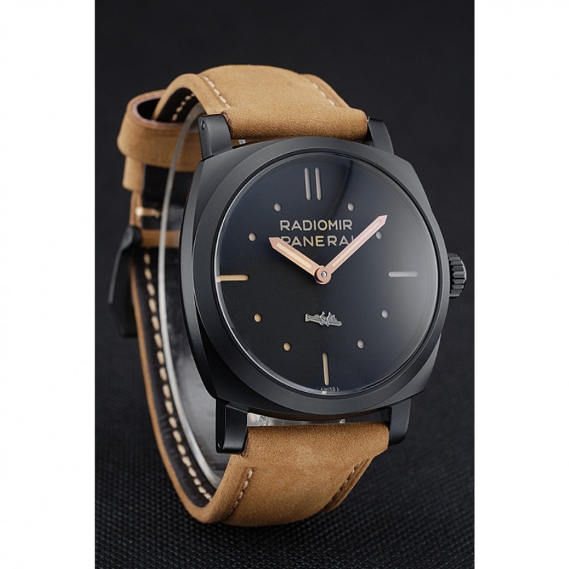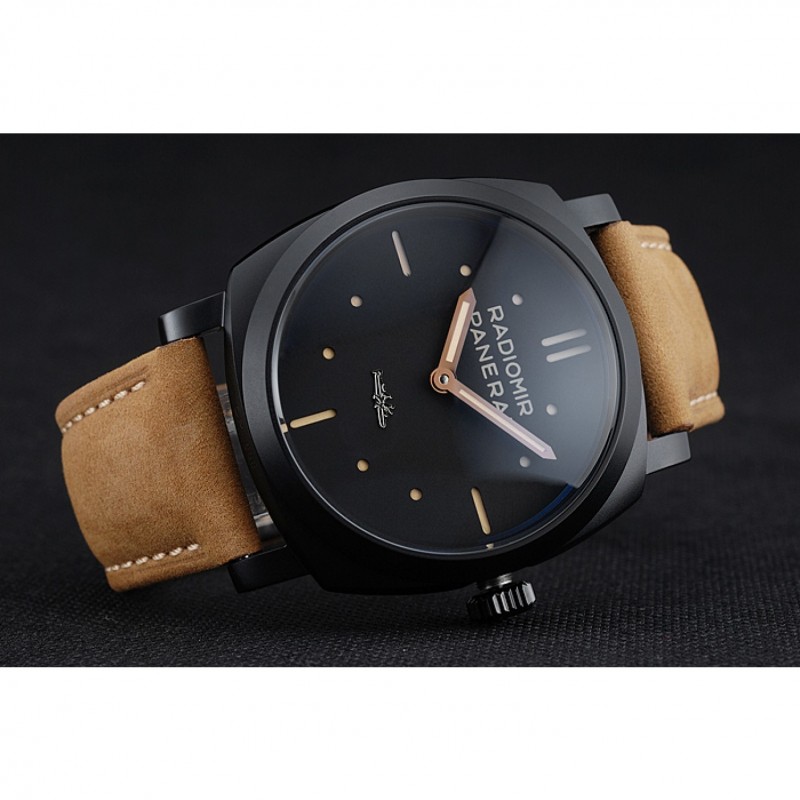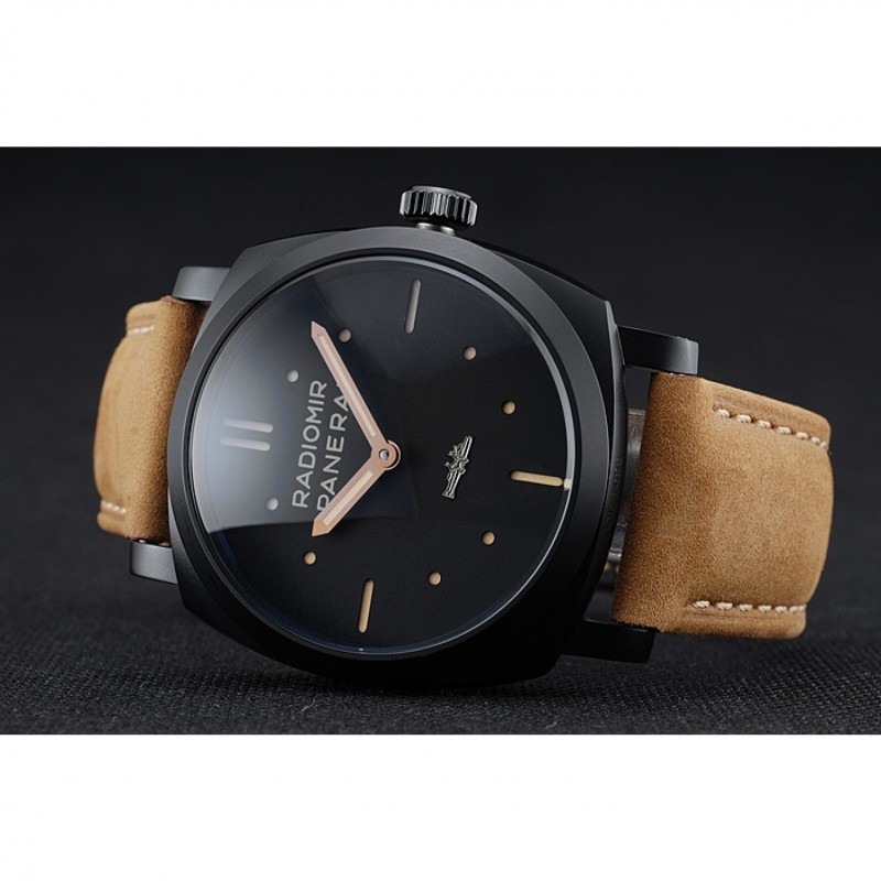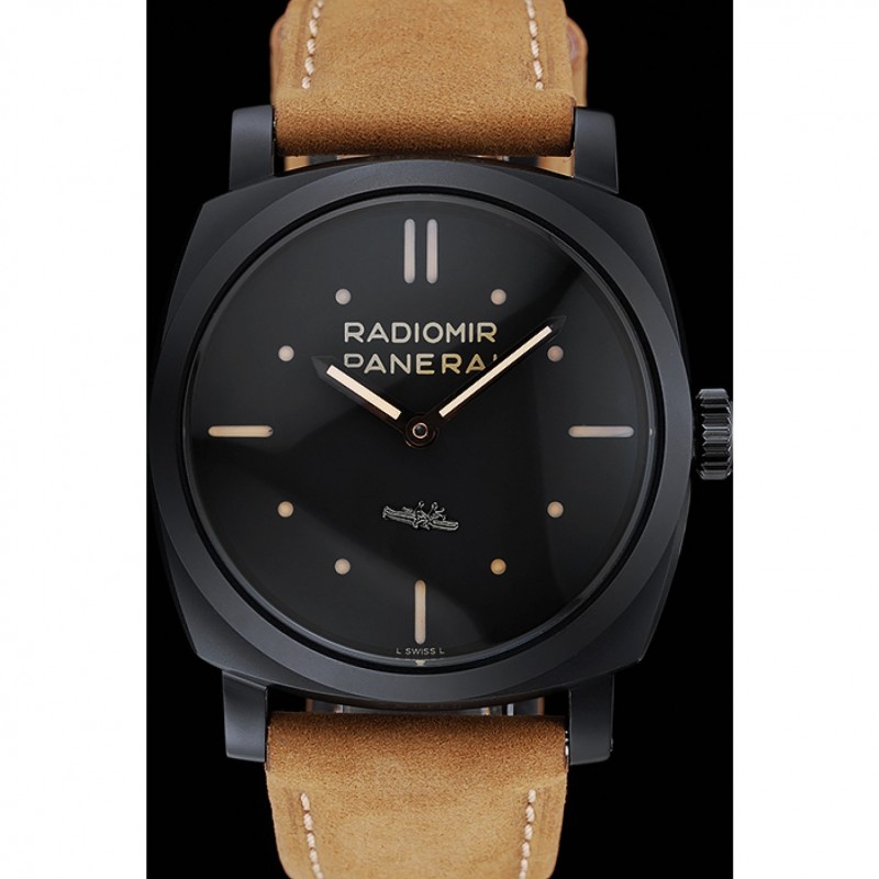 Panerai 1940 3 Días Ceramica Negro Dial Brown pulsera de cuero 1454229