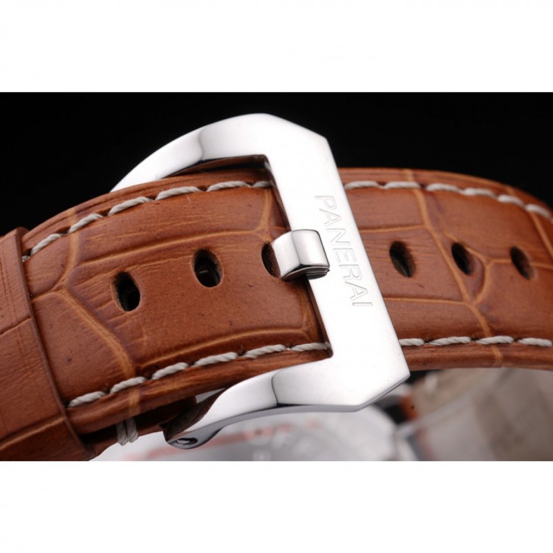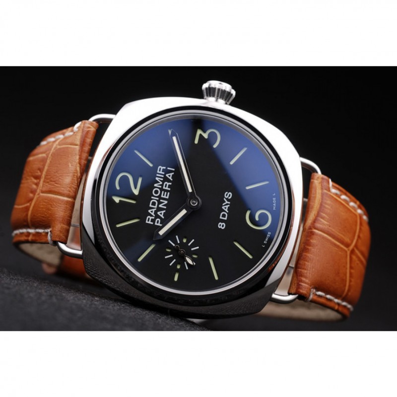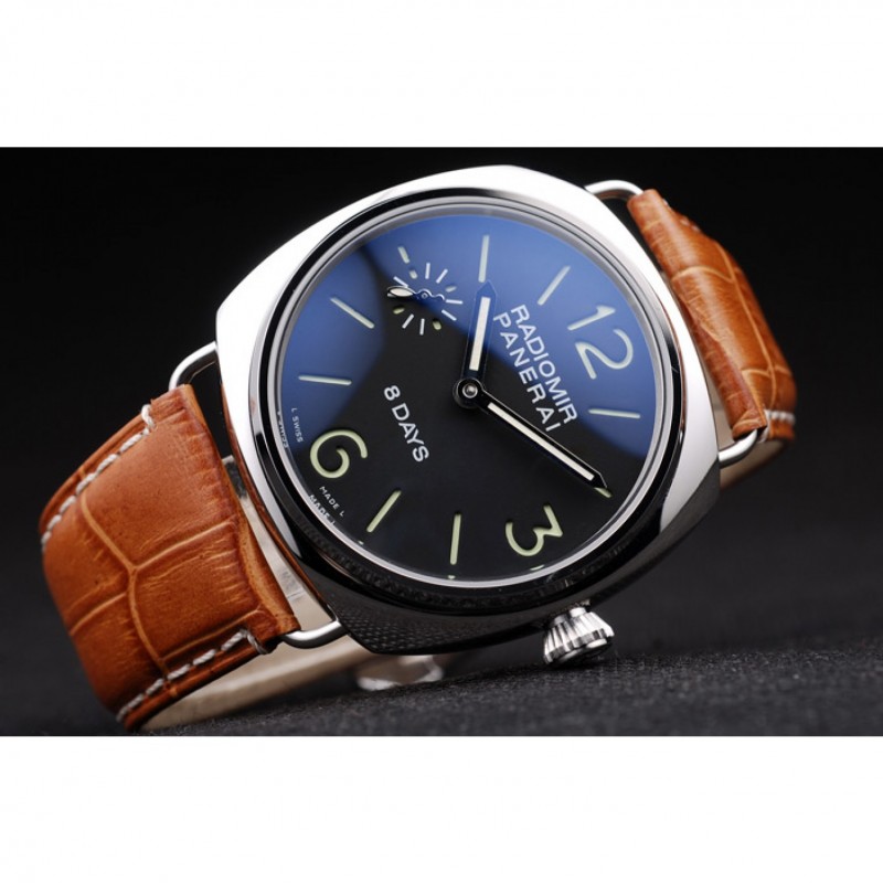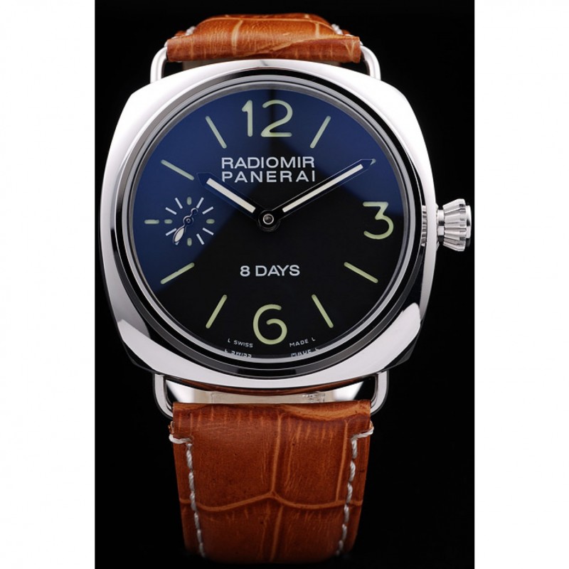 Panerai 8 Días Negro Dial pulsera de cuero marrón