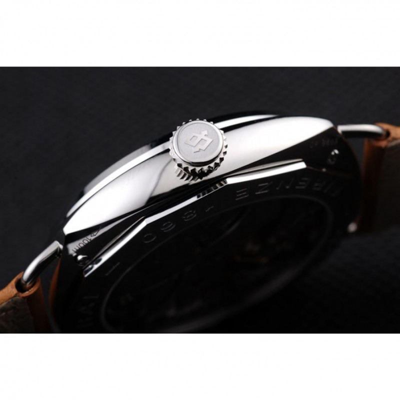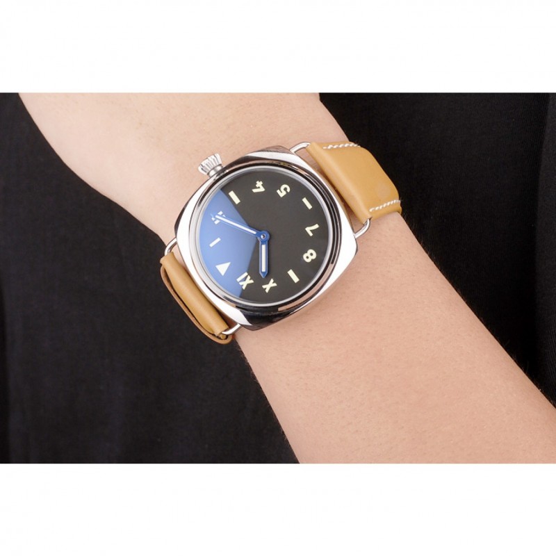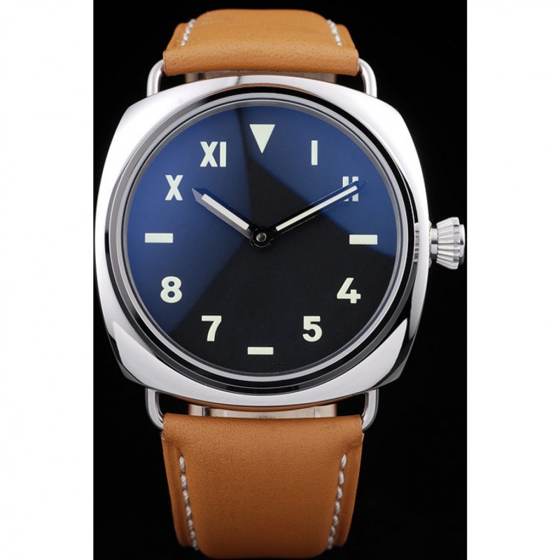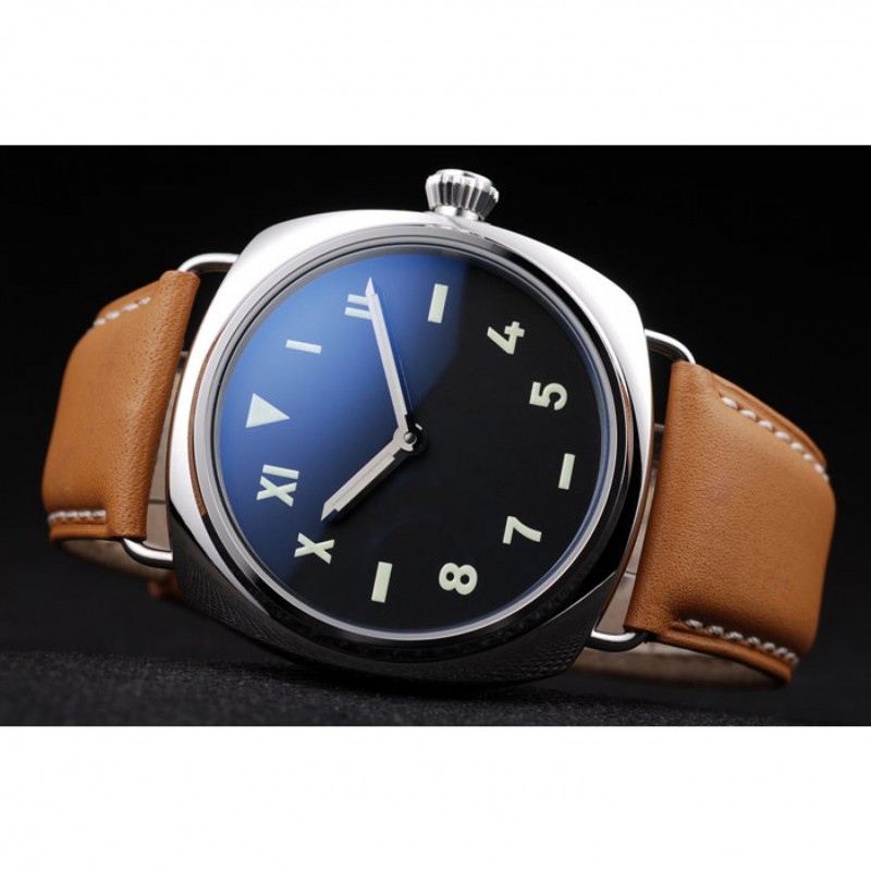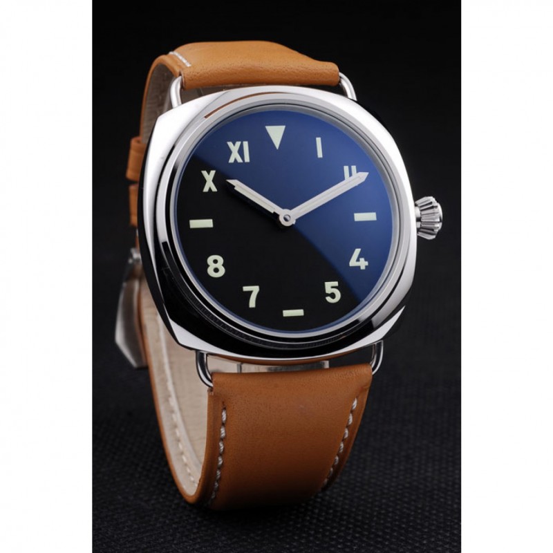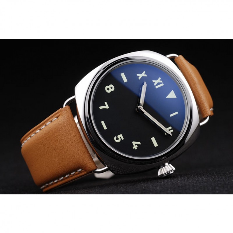 Panerai acero inoxidable pulido Caso Negro Dial correa de cuero marrón 98160