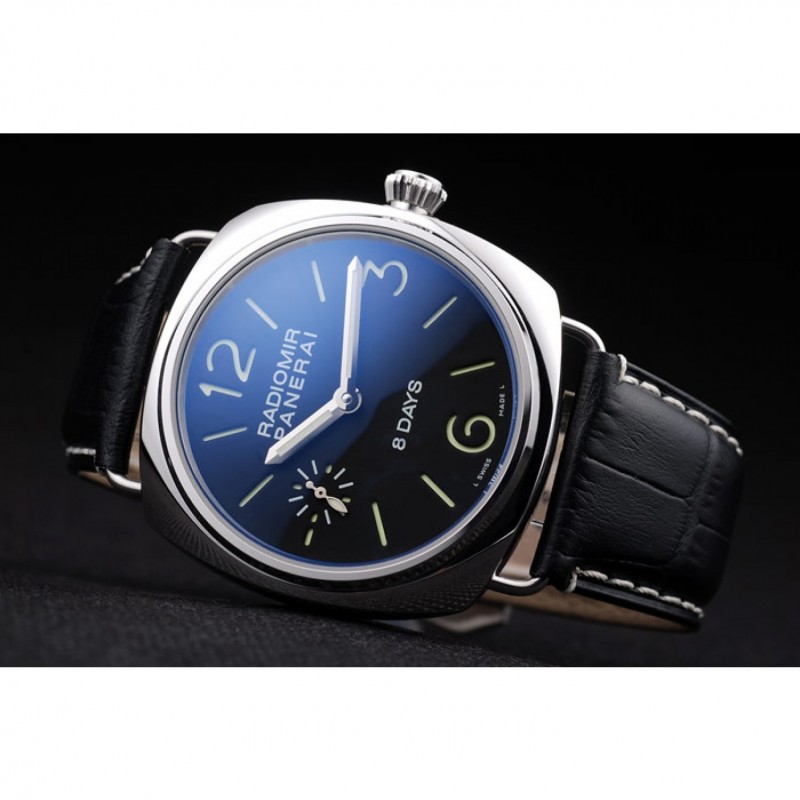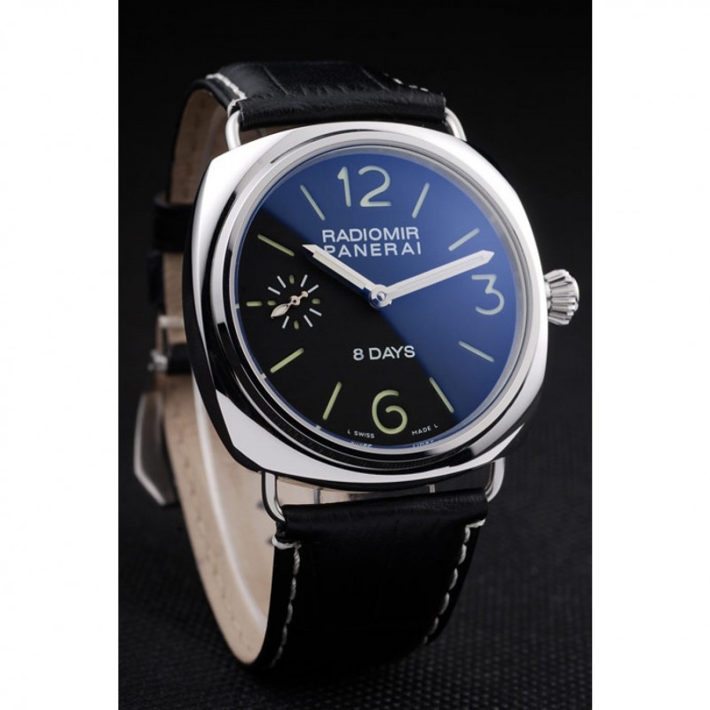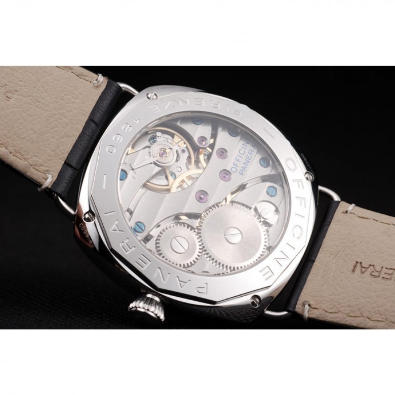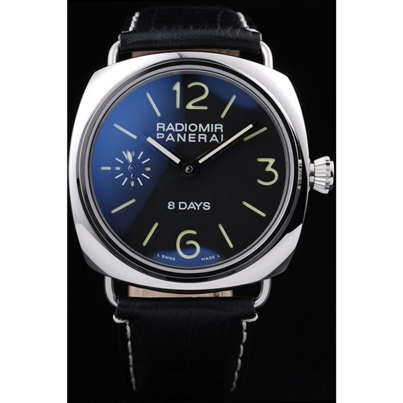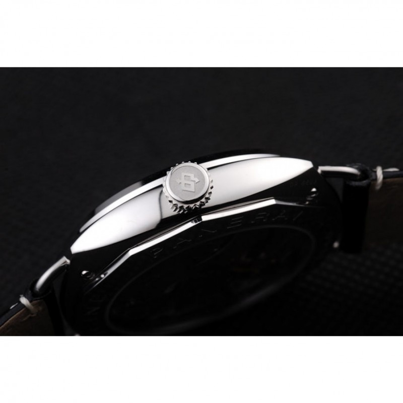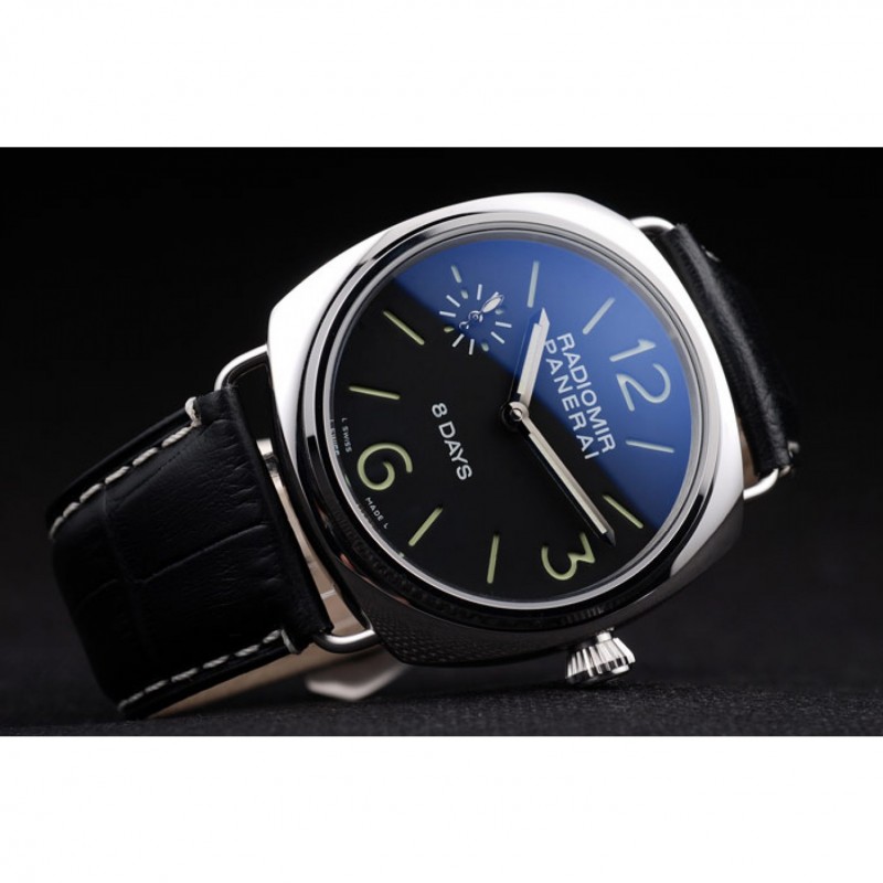 Panerai acero inoxidable pulido Caso Negro Dial correa de cuero Negro 98138