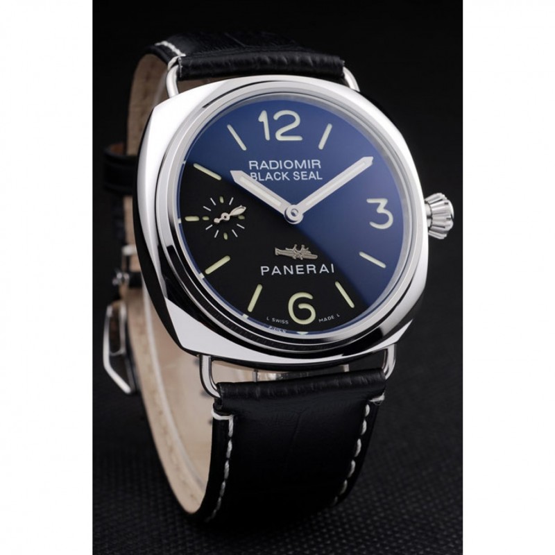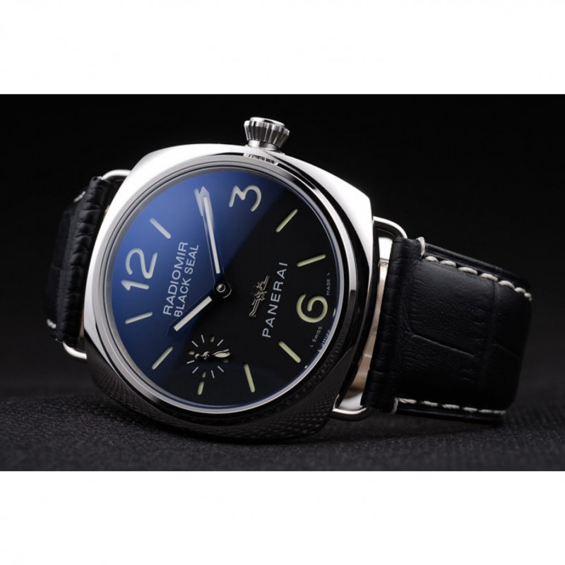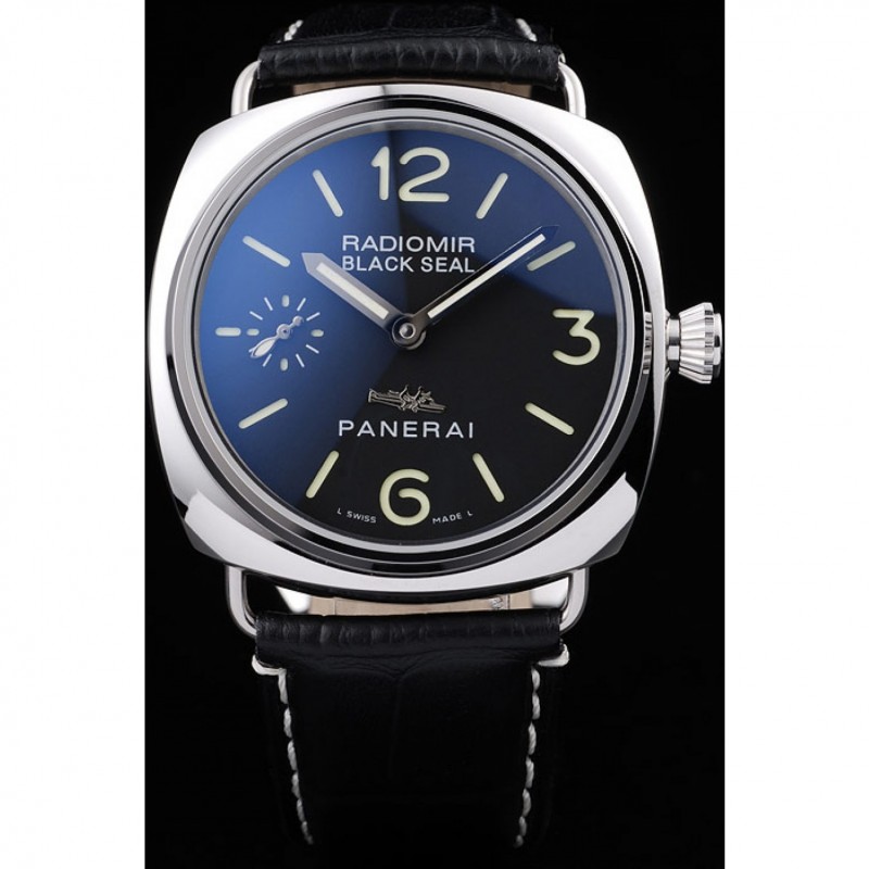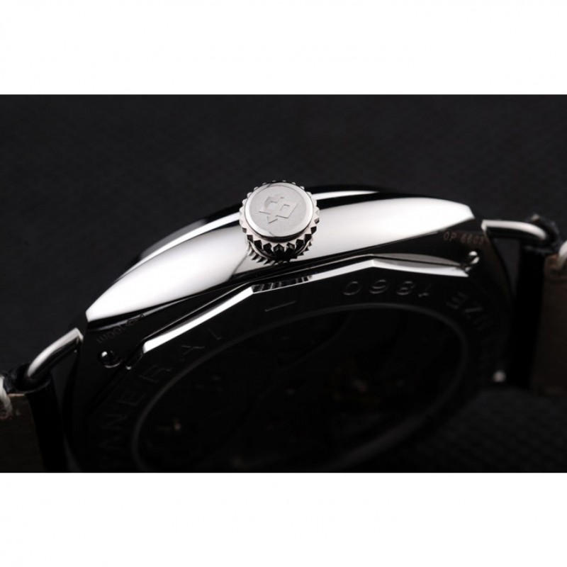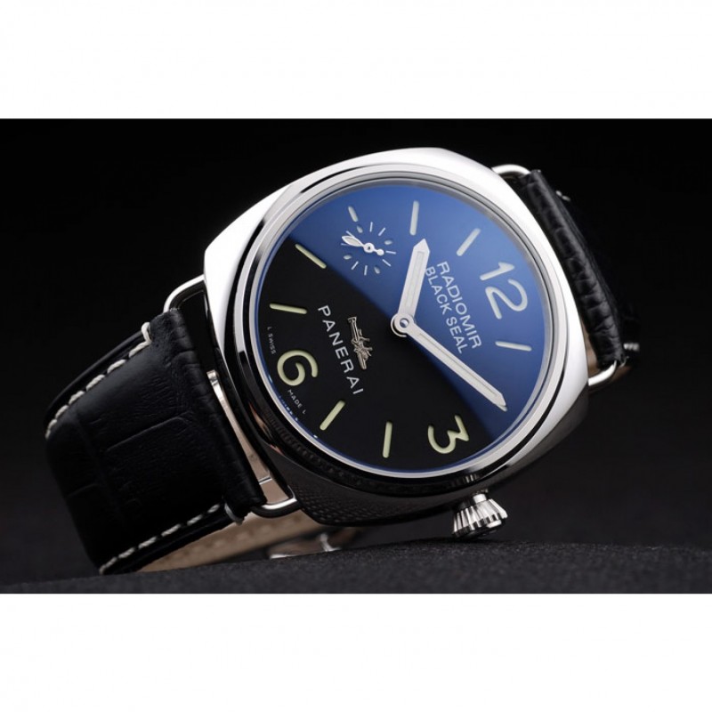 Panerai acero inoxidable pulido Caso Negro Dial correa de cuero Negro 98140