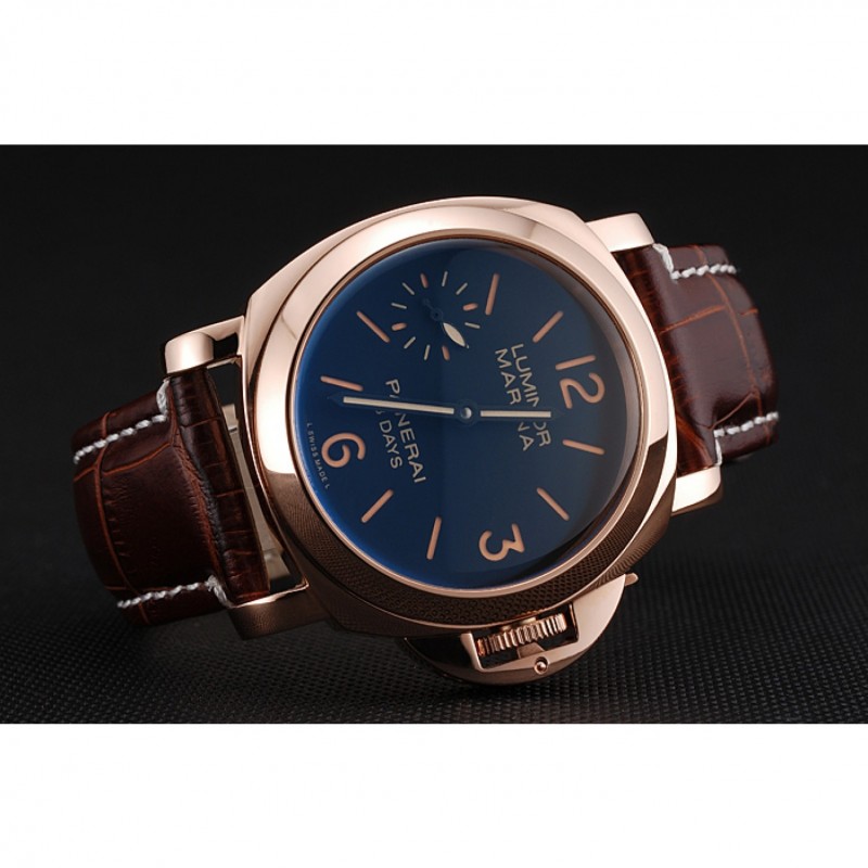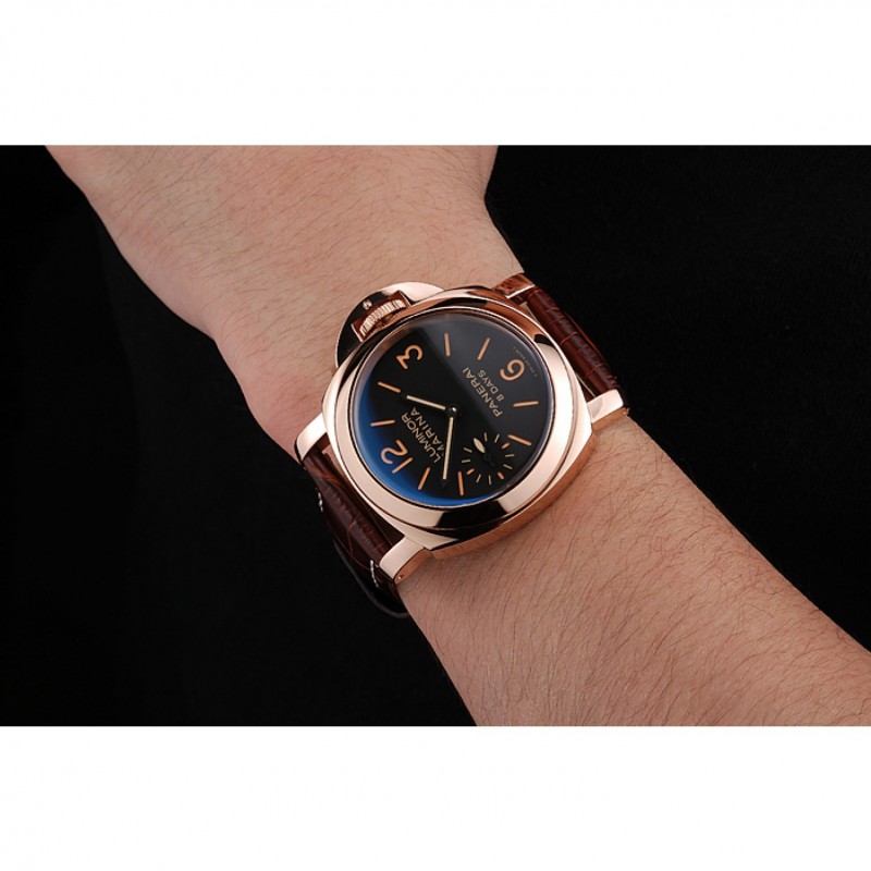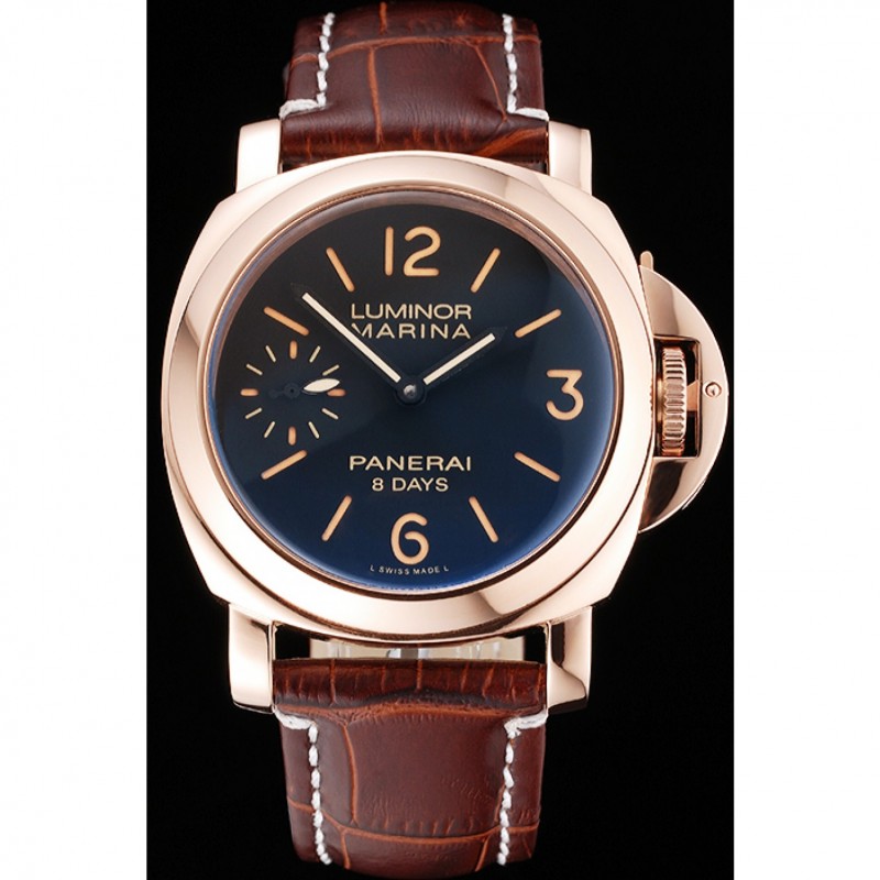 Panerai Luminor Marina 8 Días Negro Dial correa de cuero de la caja de oro rosa Brown