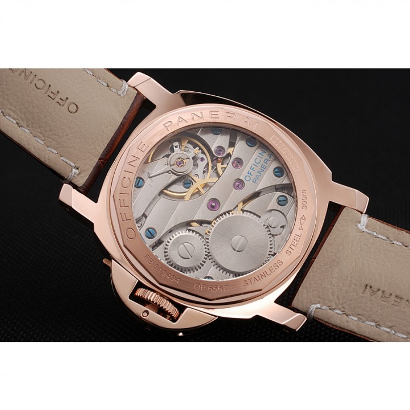Volver: 18k de oro rosa plateado complemento de vuelta con transparentes mecánica-revelando atrás y grabados Officine Panerai