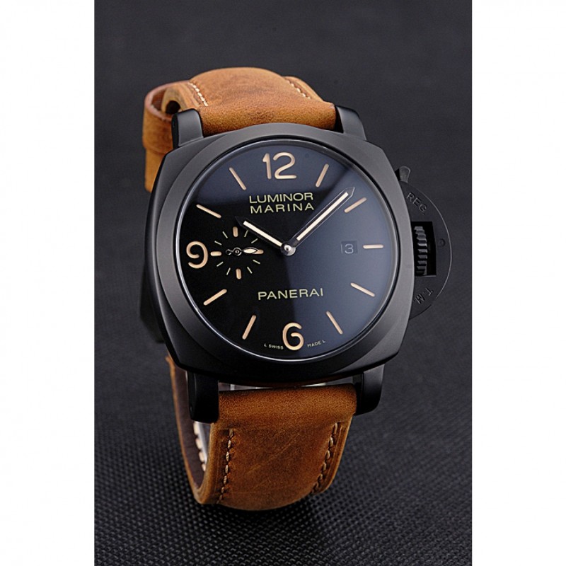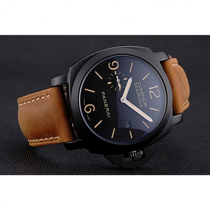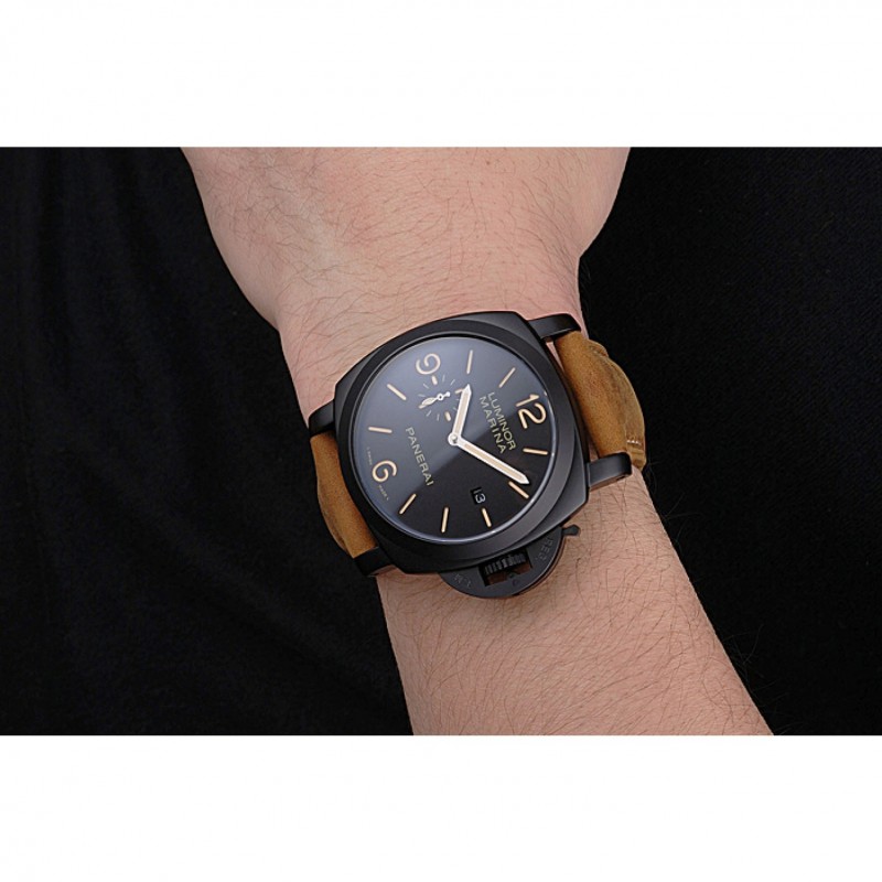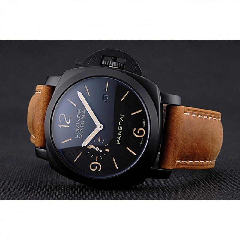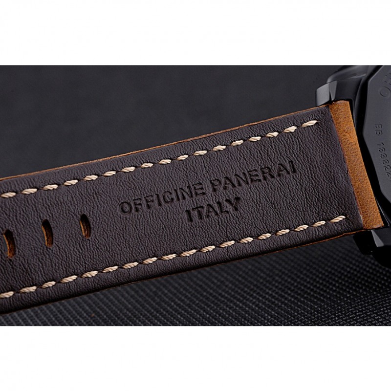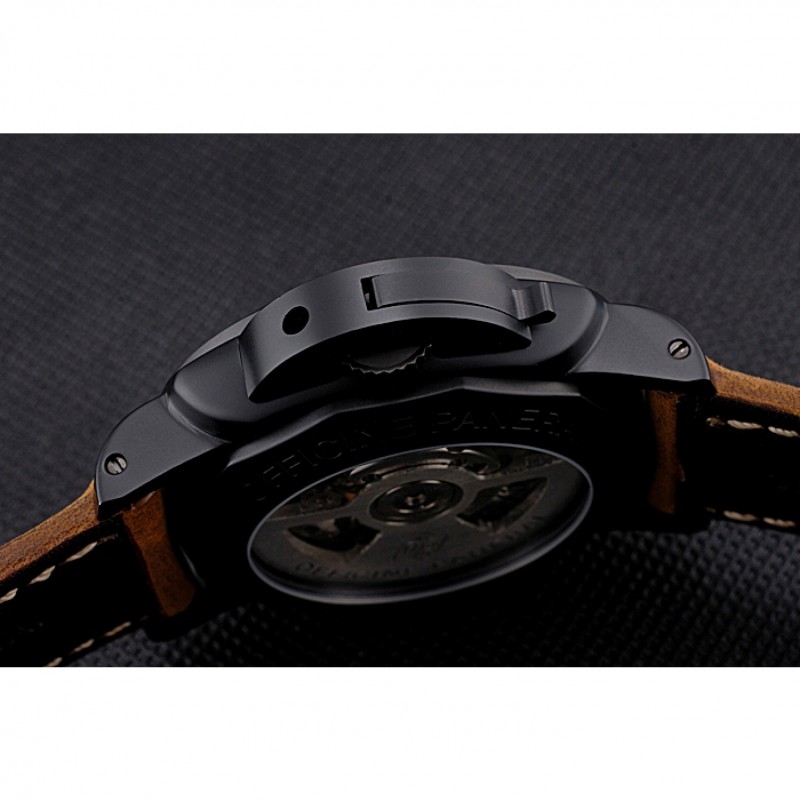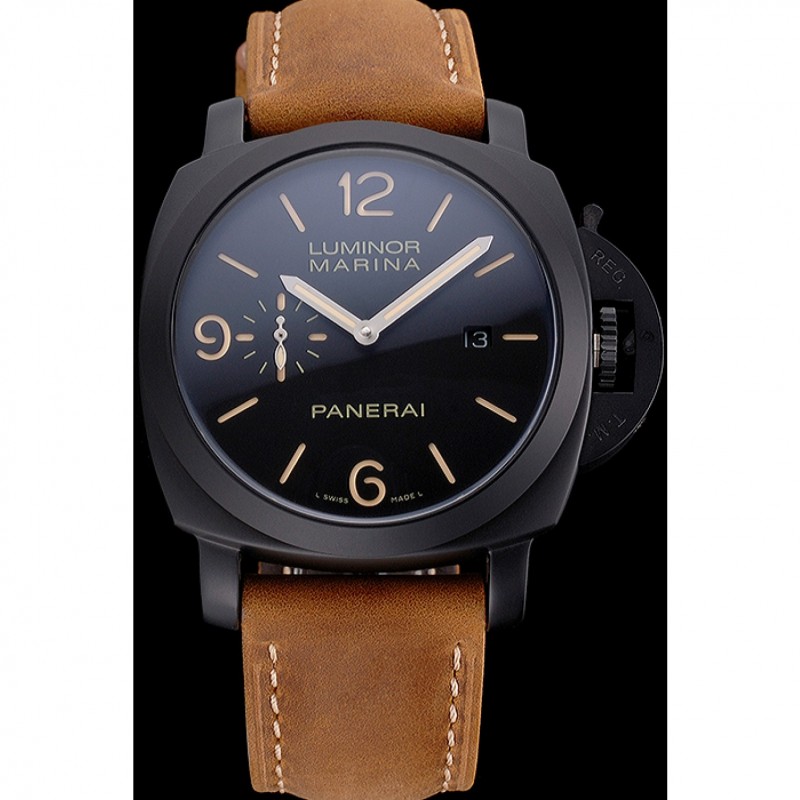 Panerai Luminor Marina Negro Dial correa de cuero Negro mate caja de acero Ante Marrón